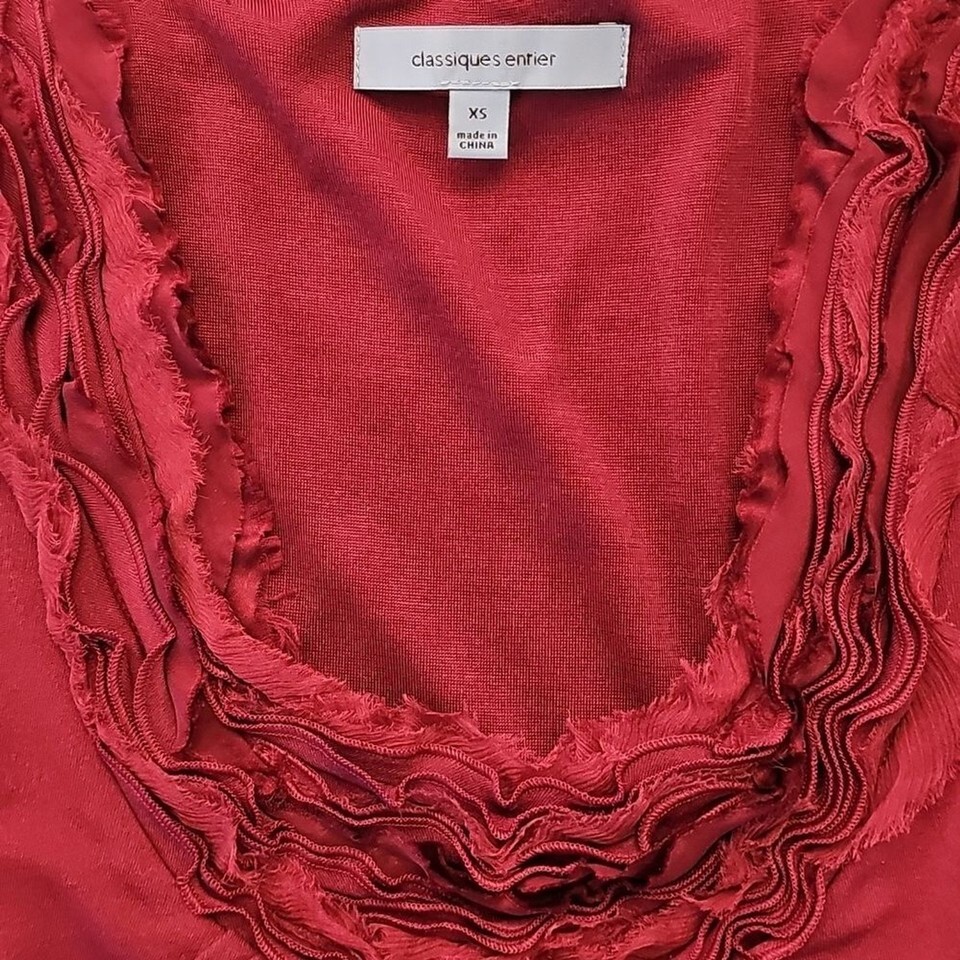 CLASSIQUES ENTIER Merlot Ruffled Silk Jersey Knit Top Size XS