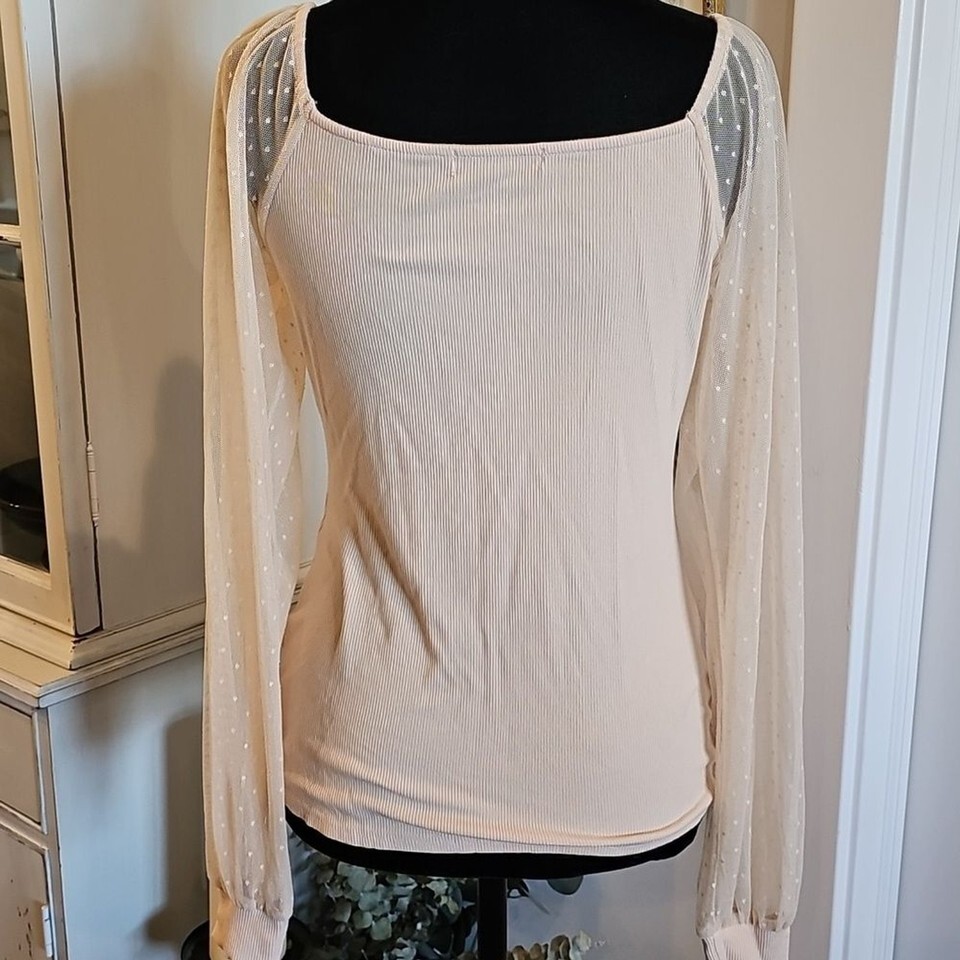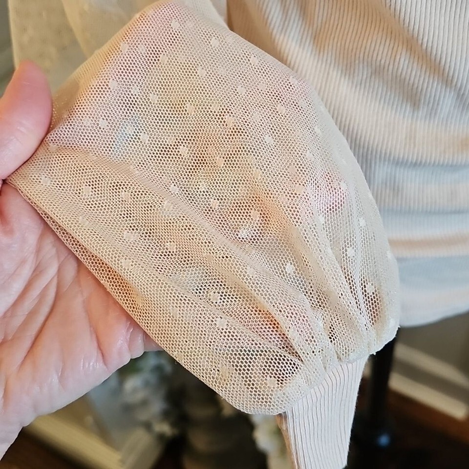 DOROSE Puff Sheer Sleeve Ribbed Scoop Neck Coquette Top Size Large Balletcore
