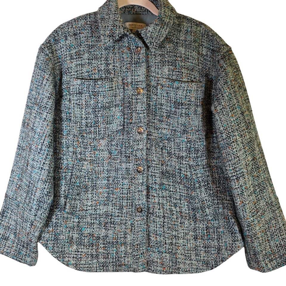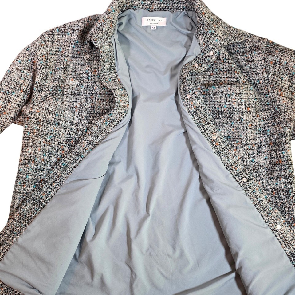 DEREK LAM Women's 6 Blue Tweed Wool Blend Jacket Shacket Oversized Timeless