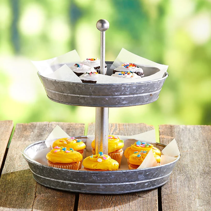 2 Tier Serving Tray Stand Table Display Party Platter Galvanized Metal Farmhouse