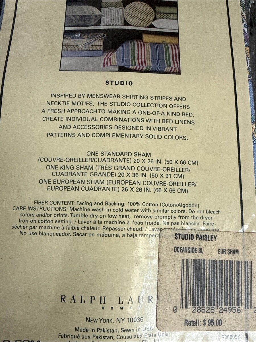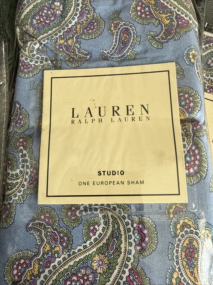 Ralph Lauren Studio Paisley European Pillow Shams Oceanside Blue New Vintage