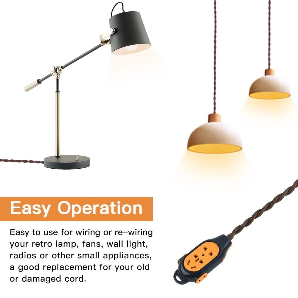 ? Application ? The rayon fabric covered electrical cord is soft, flexible, and easy to use for wiring or repair your retro lamp, fans, pendant light, wall light, radios or other small appliances, perfect for vintage or industrial style decor, a good for your old or damaged cord.