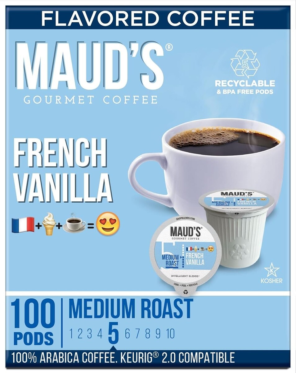 [Flavorful French Vanilla Blend]: French Vanilla Flavored Coffee Pods deliver a punch of zero-sugar sweetness with a medium roast flavored coffee blend that includes hints of vanilla and cream. The result is a smooth-bodied coffee with a sweet aroma and a buttery finish of vanilla flavor.