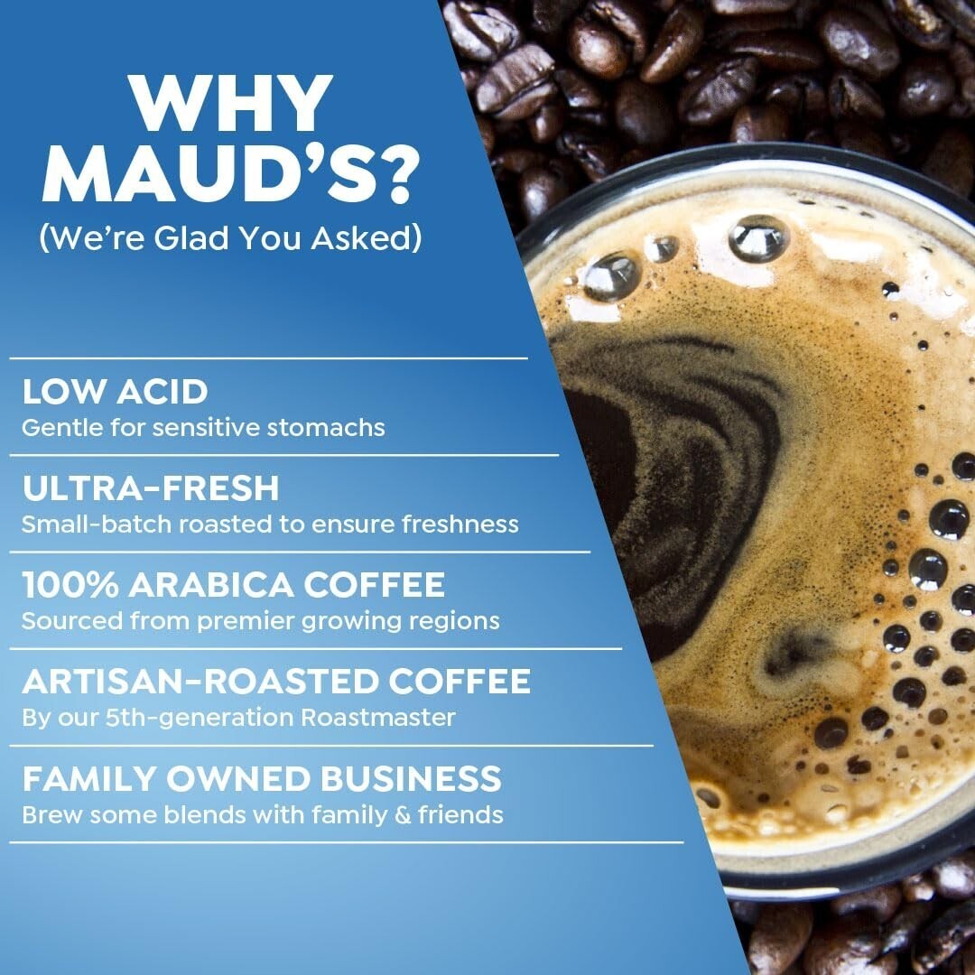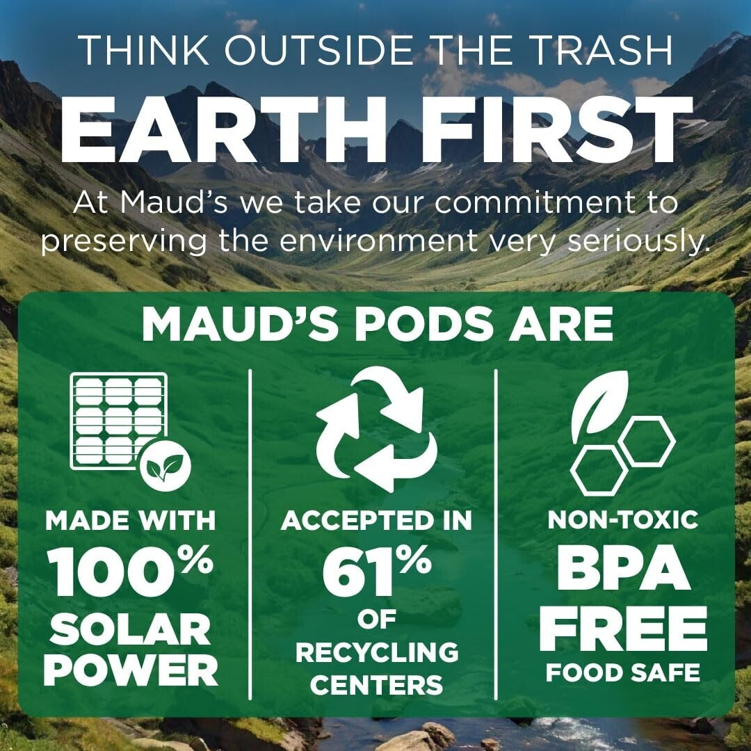 [Maud?s Legacy]: Experience the essence of Maud?s in every sip, with coffee pods that capture the heart of our product, delivering unforgettable taste and quality for coffee enthusiasts, all while supporting the world with California Roasted 100% Solar Energy Roasted beans. Upgrade your coffee experience with Maud?s, where taste, affordability, quality, and convenience meet in every cup.