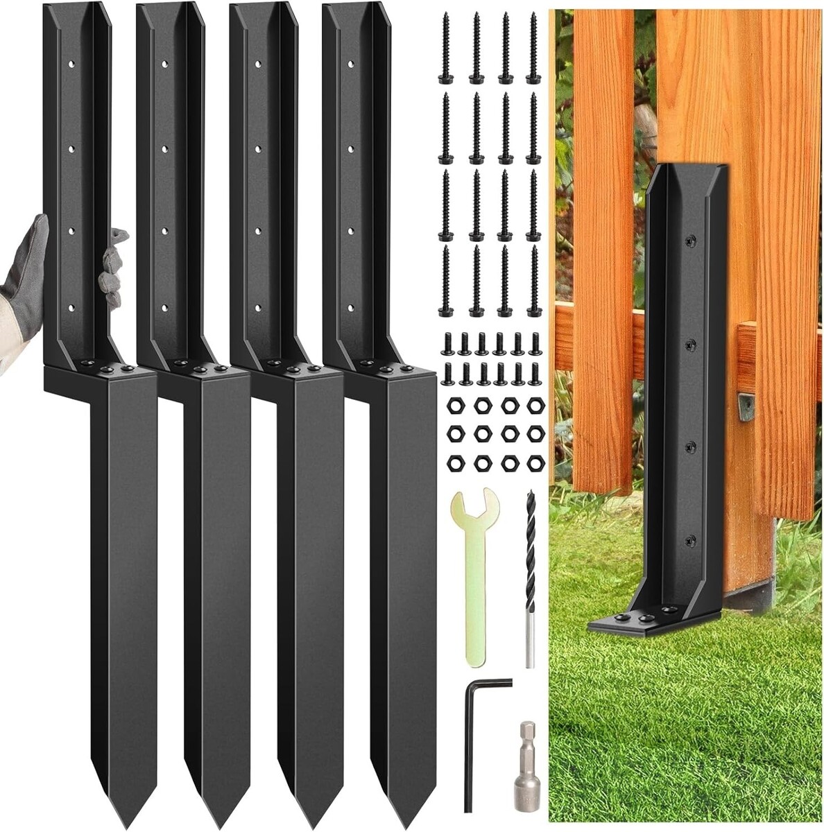 Fence Post Repair, Heavy Duty Fence Post Anchor Kit, Fence Post Repair Stakes...