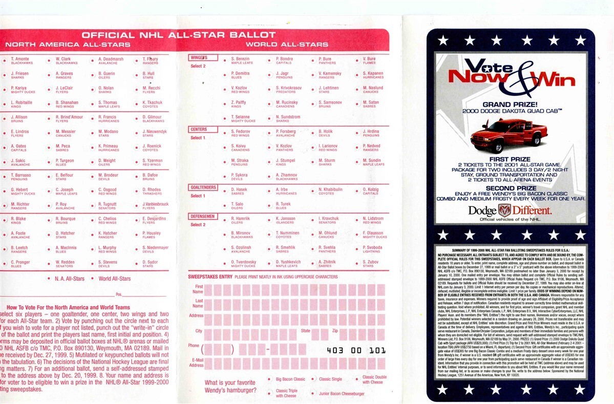 Wendy's 2000 NHL ALL Star Official Ballot and 23 similar items