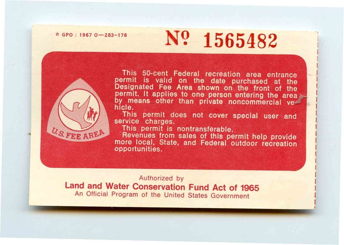 Individual One Day Permit 50 Cents Federal Recreation Area Entrance 1965