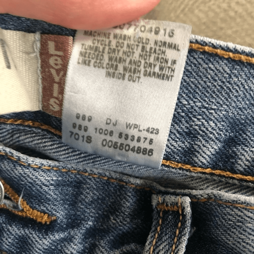 Levi?s 550 relaxed fit 100% cotton jeans from October 2006. Once part of distressing on the lower thigh but the overall material is still strong and not thinned. Just adds character. The size is 36 inch waist and the label says 34 inch inseam but after washing they now measure closer to 33? inseam.