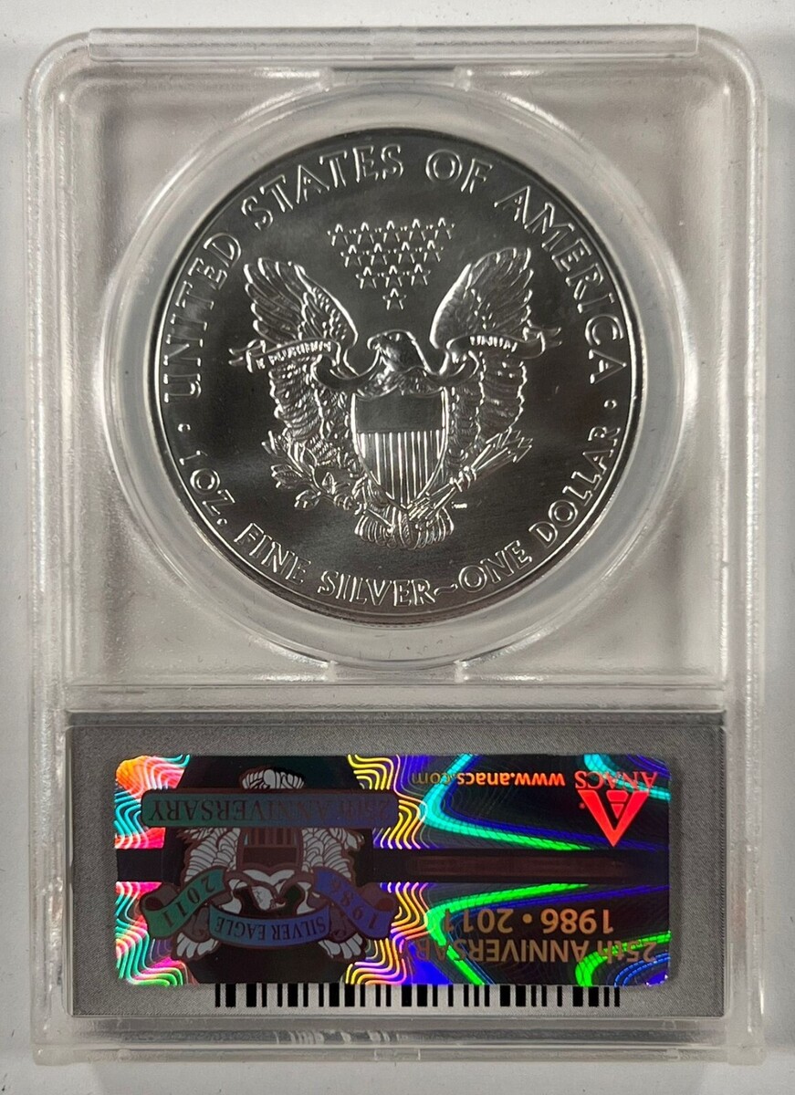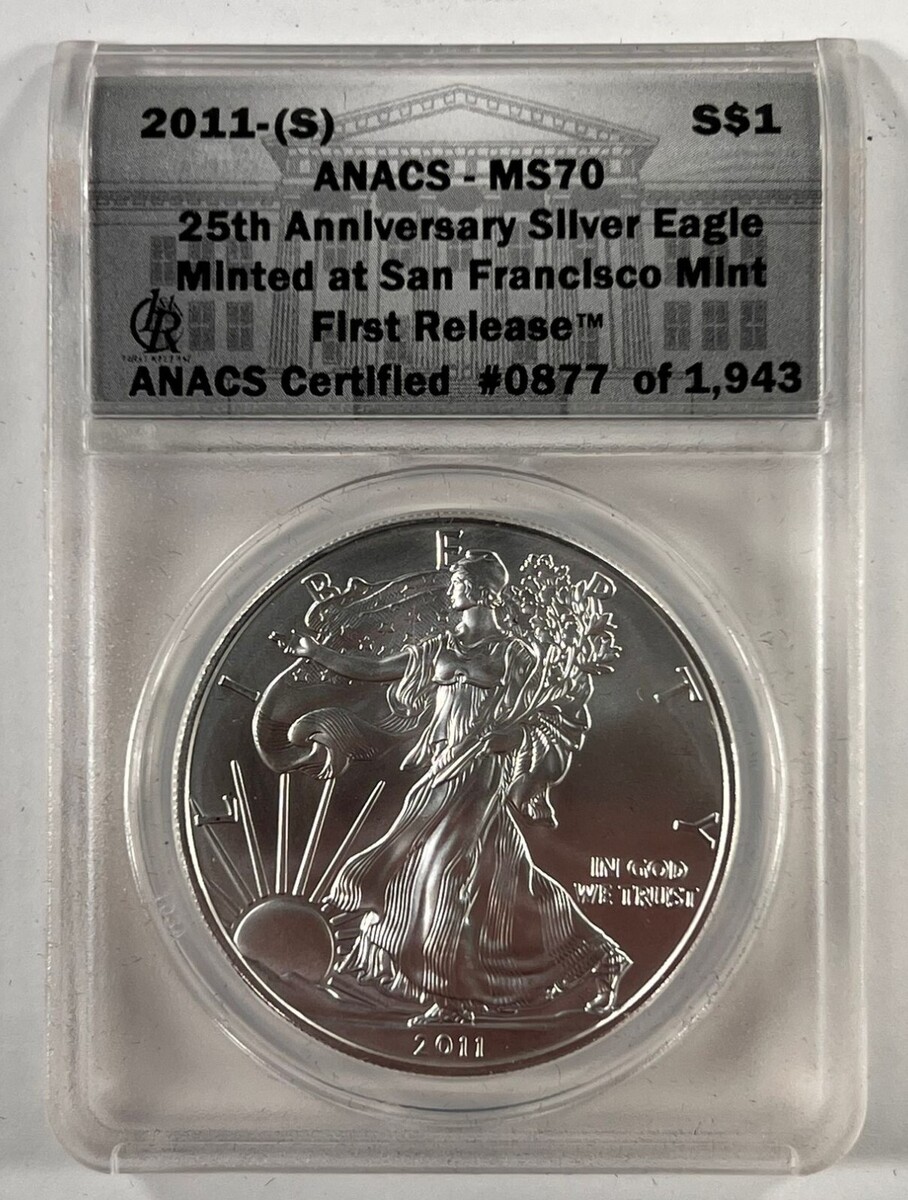 2011-S $1 Silver American Eagle Graded by ANACS as MS-70 First Release 25th Ann.