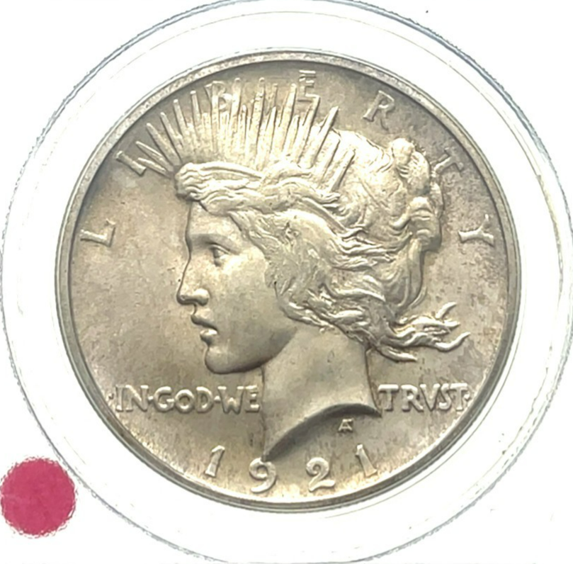 1921 $1 Silver Peace Dollar High Relief Graded by PCGS as MS64 Uncirculated