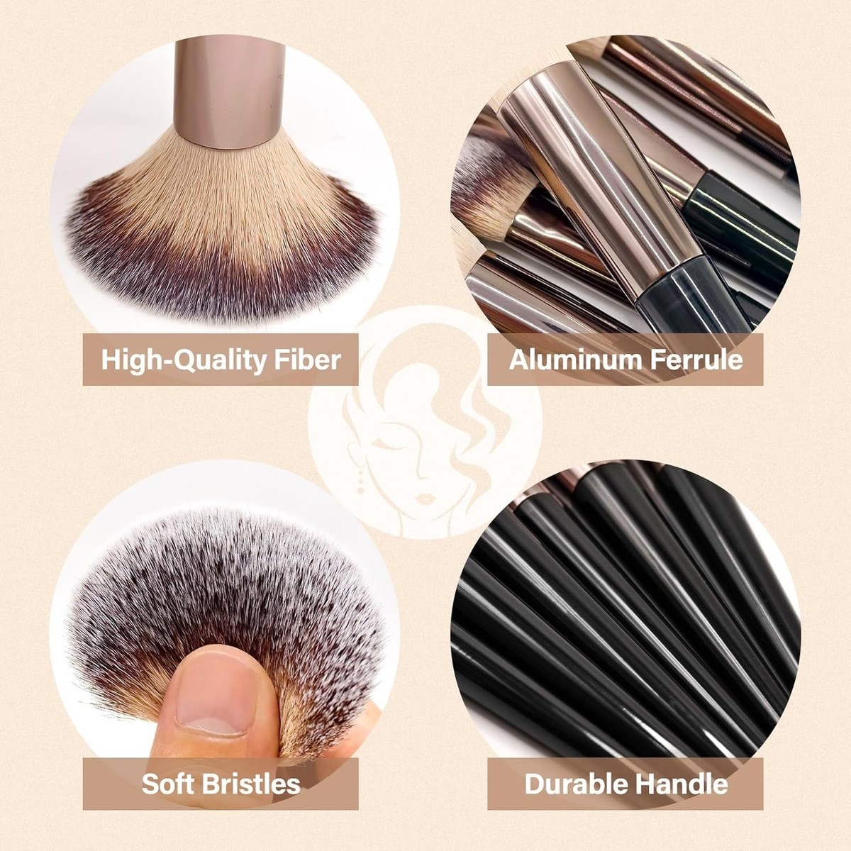 Our Professional Makeup Brush Set includes 21 brushes designed to meet various makeup needs, such as applying eyeshadow, crease color, concealer, blush, foundation, powder, highlighter, and eyebrow products. It ensures smooth application and perfect blending/shading. They make daily makeup routines easier and more efficient.
