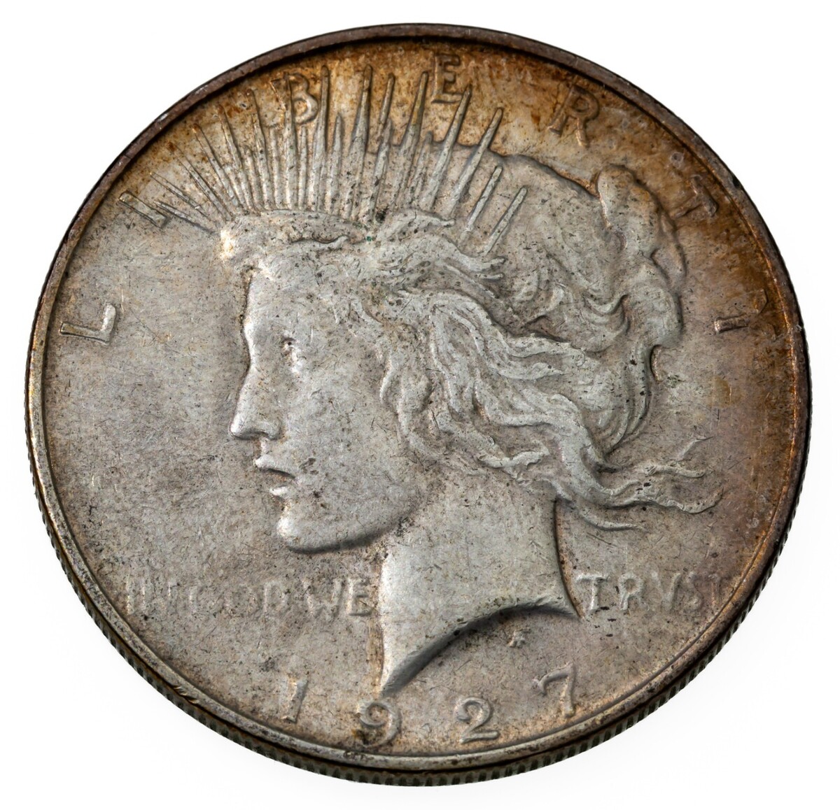 1927-D Peace Dollar About Uncirculated AU Luster and Original Rim Toning