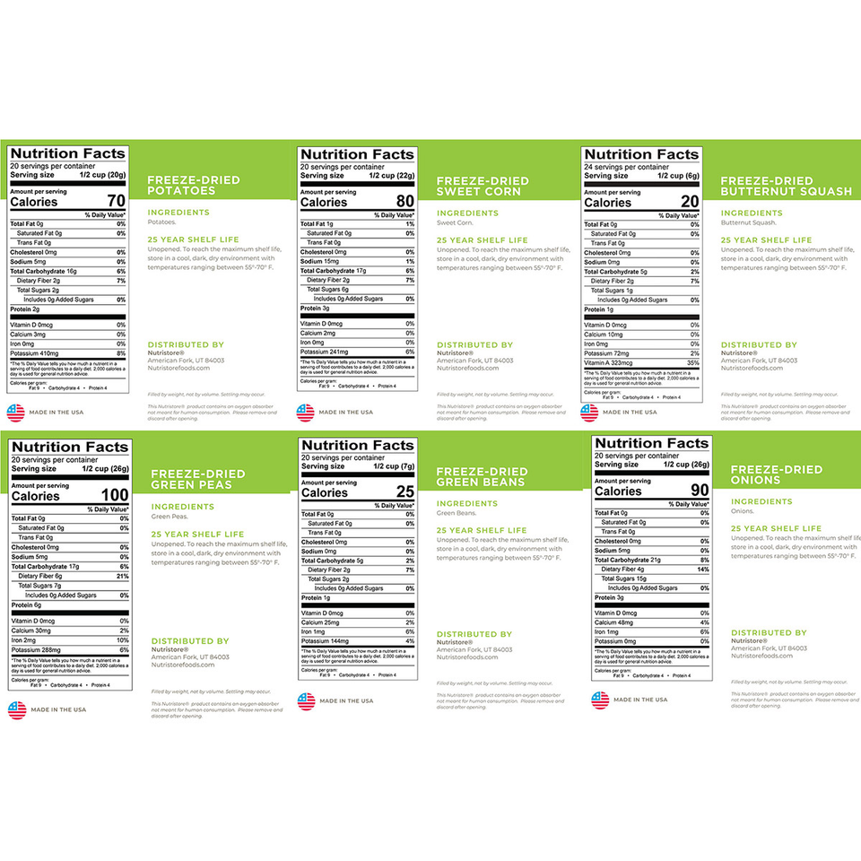 The Nutristore? Veggie Variety Bundle provides fan favorite freeze-dried vegetables ready for quick healthy snacks or stored for emergency preparedness. Our high-quality produce is freeze-dried at peak nutrition to lock in critical nutrients and taste.