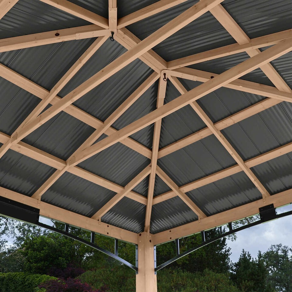 GAZEBO WOODEN OUTDOOR PATIO DECK HARD TOP YARDISTRY GARDEN BACKYARD CEDAR 12X14