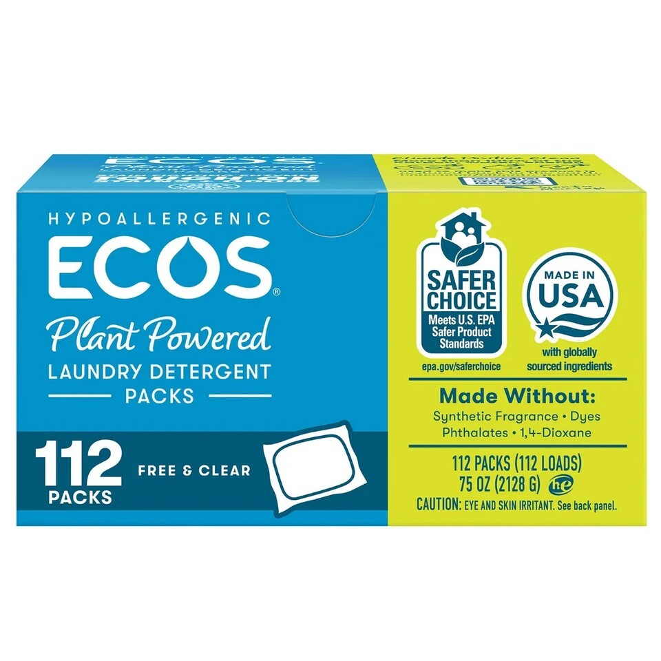 ECOS Laundry Detergent Packs, Free Clear, 112-count