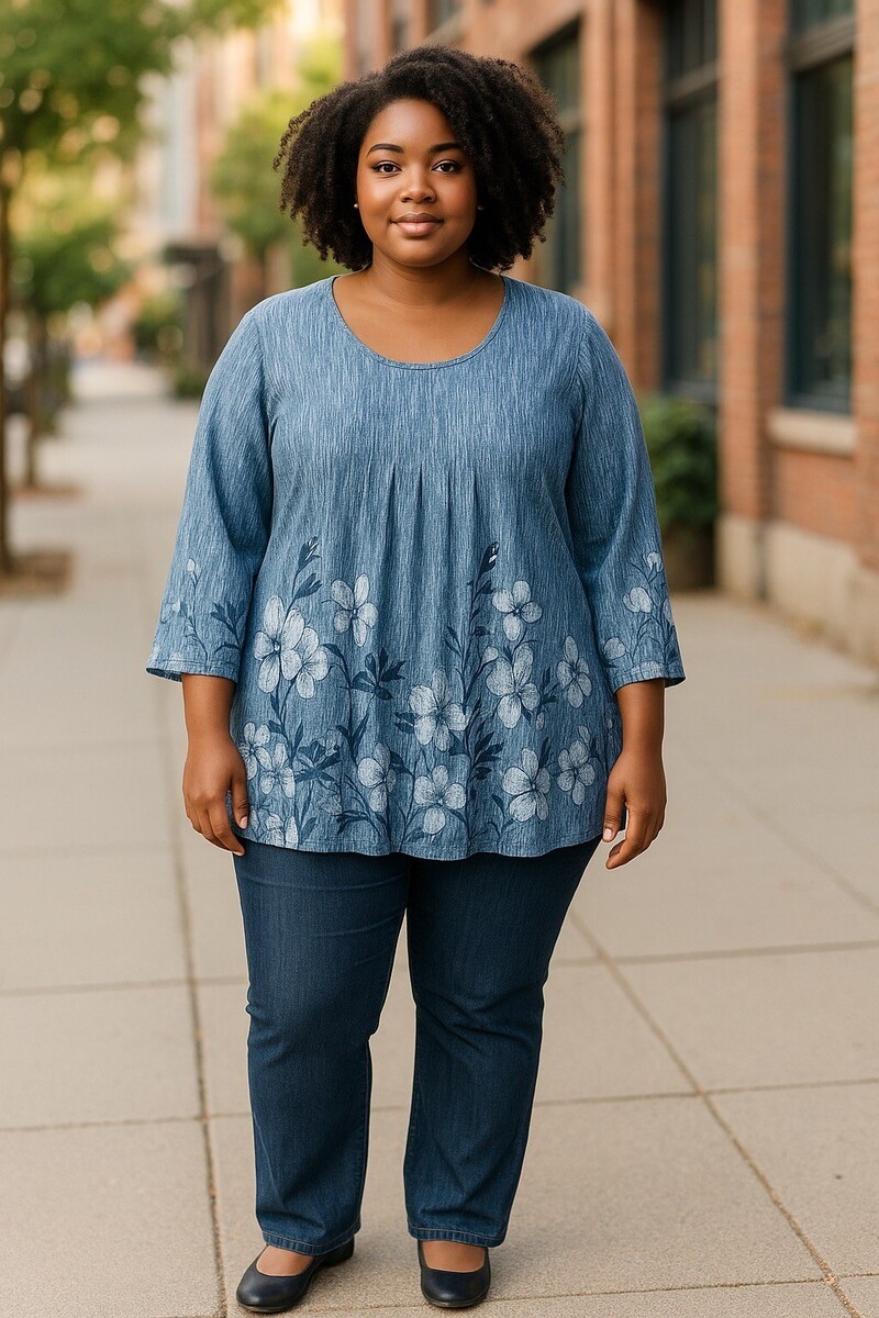 Timeson Womens XL Blue Floral Tunic Top 3/4 and 50 similar items