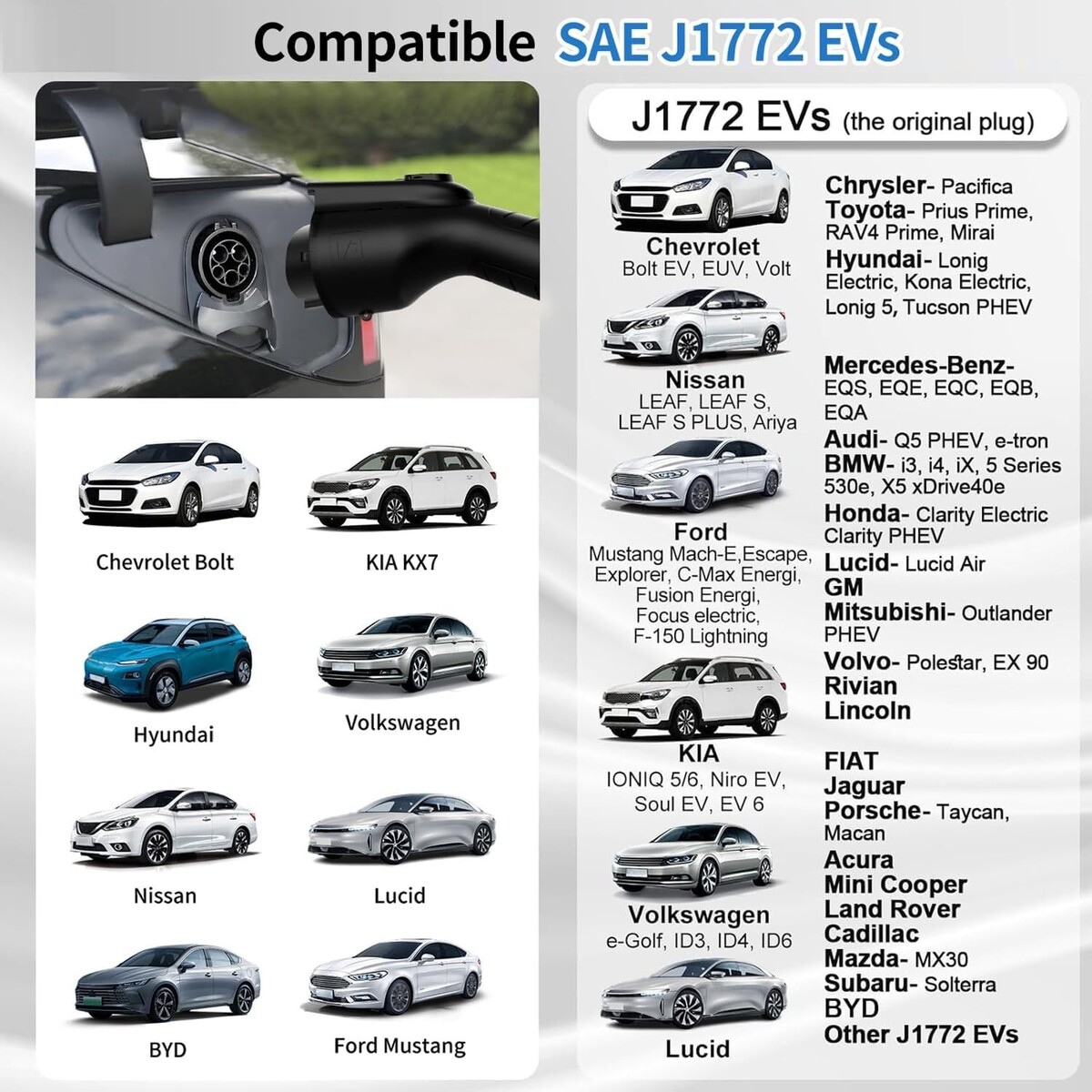 ?Universal Charger for All EVs Include J1772?SubSun portable ev charger is perfectly compatible with all J1772 electric vehicles and plug-in hybrids in North America, including Chevrolet Volt, Bolt EV, Nissan Leaf, VW, KIA, BMW, Ford, Honda, Hyundai and other brands. Whether your friends and family member are other evs, they can also enjoy the convenience you bring.