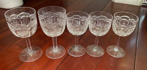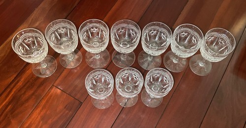 Set 10 Kusak Cut Glass Works Chantilly Lace Crystal Wine Cordial Glasses HandCut