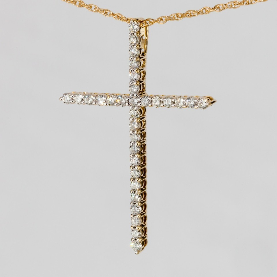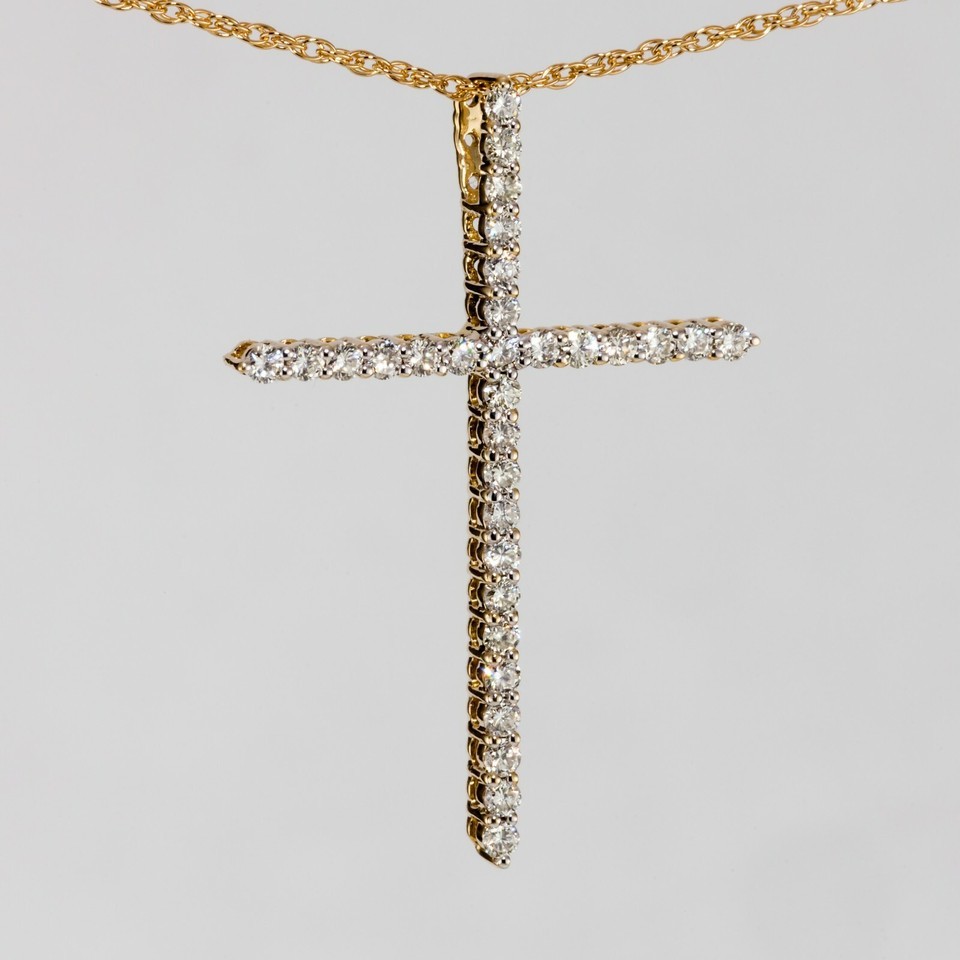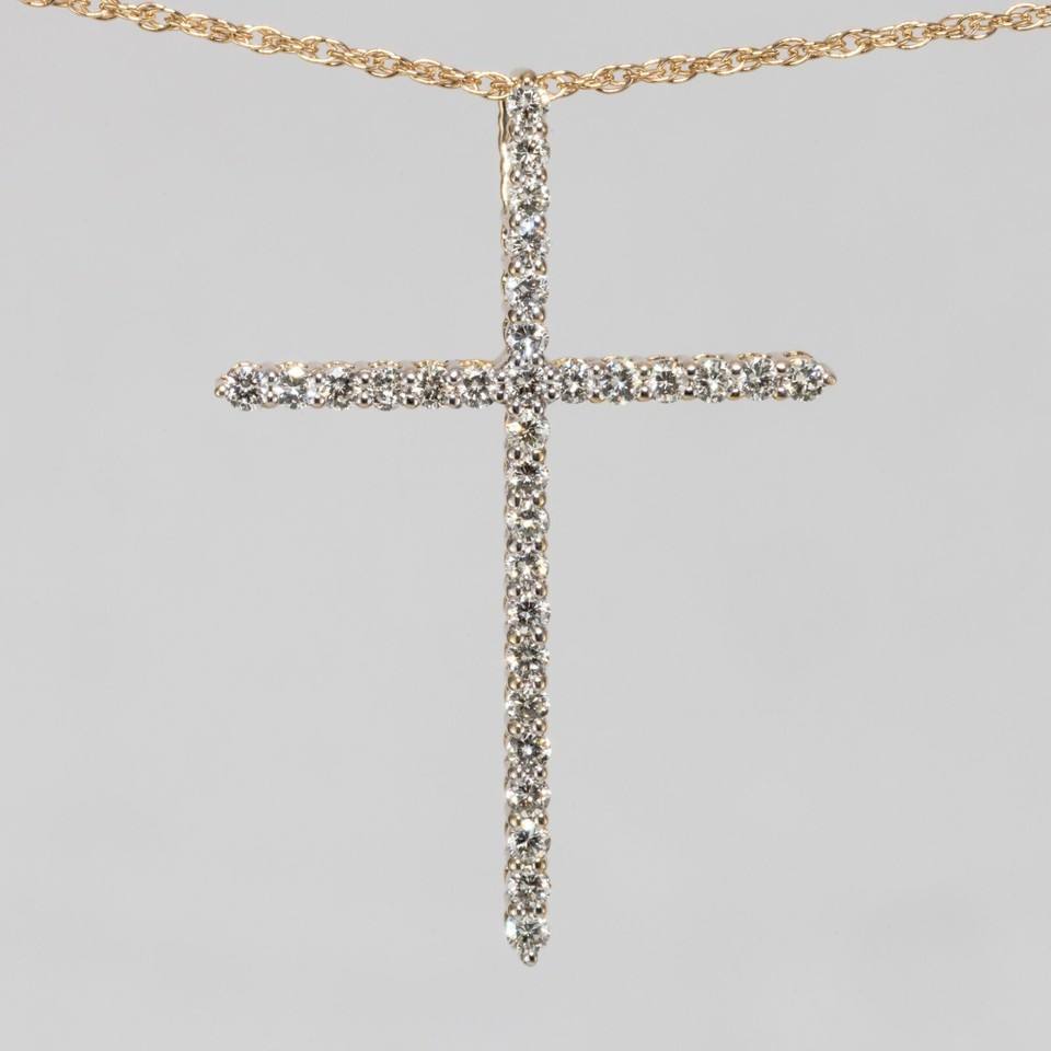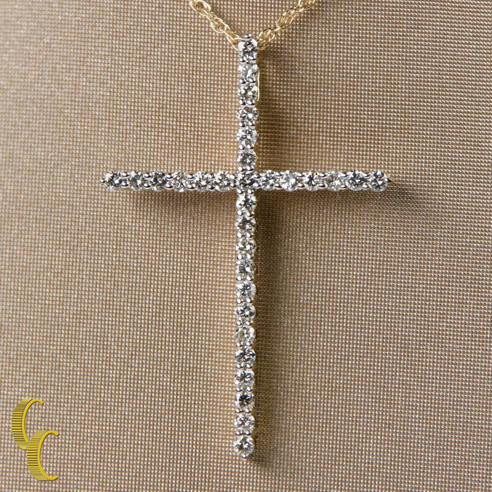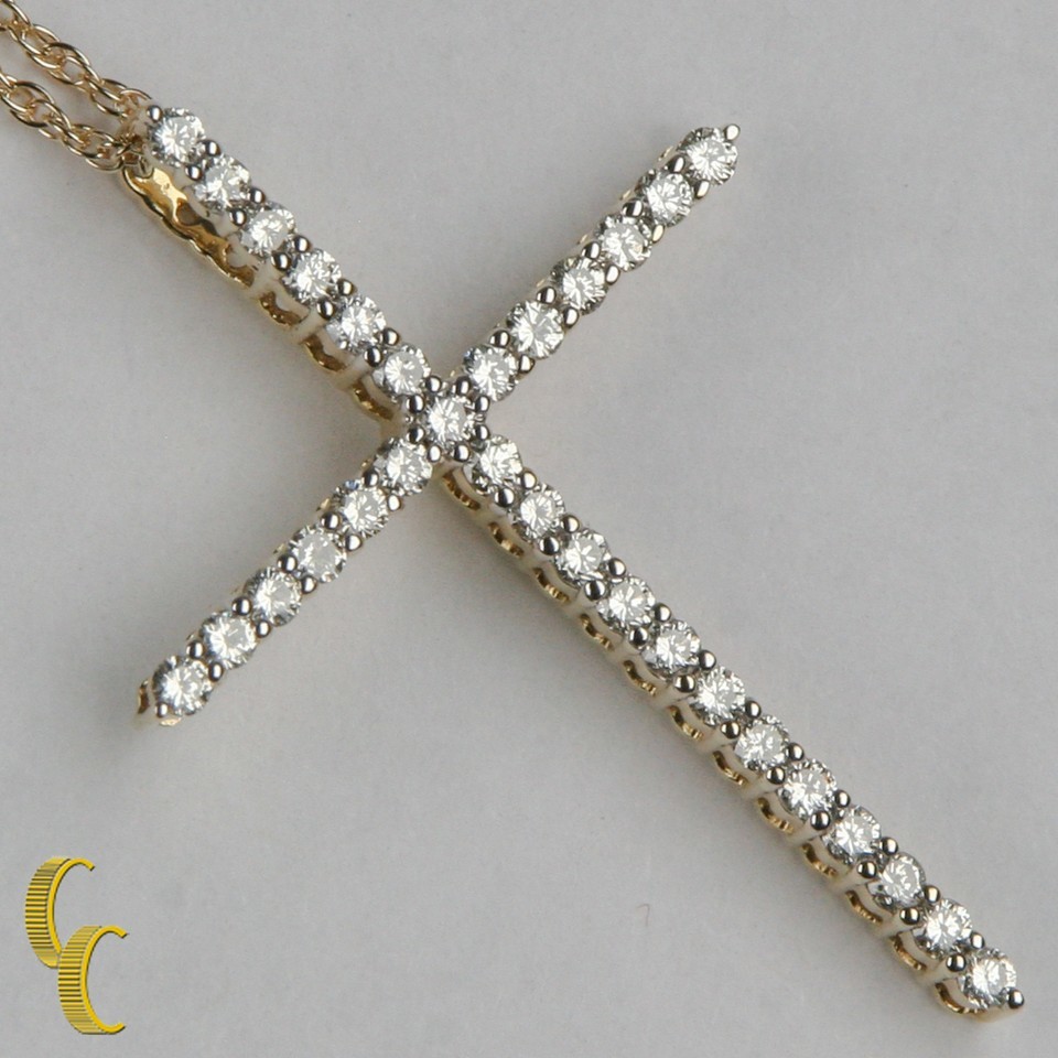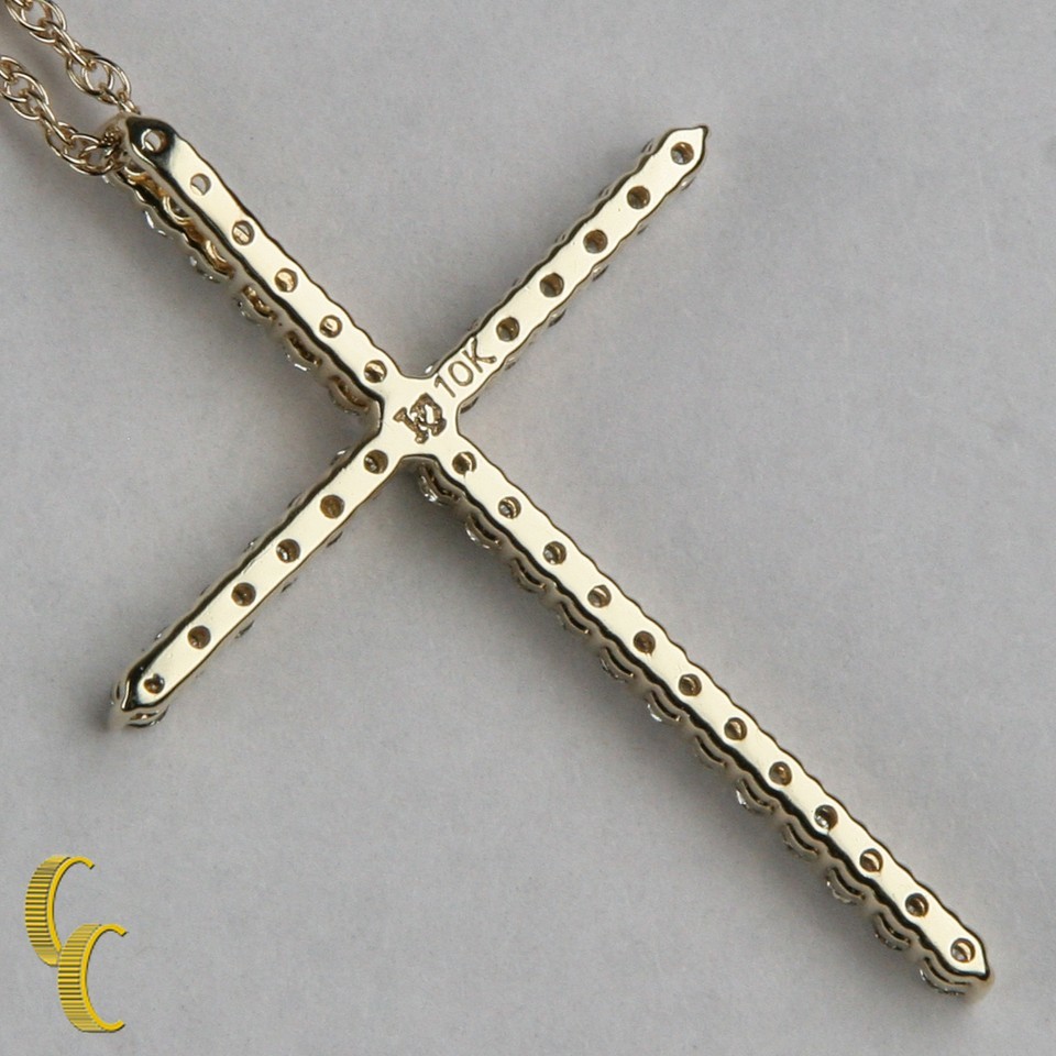Authenticity Guarantee 10k Yellow Gold Diamond Cross Pendant TDW = 0.56" w/ ...