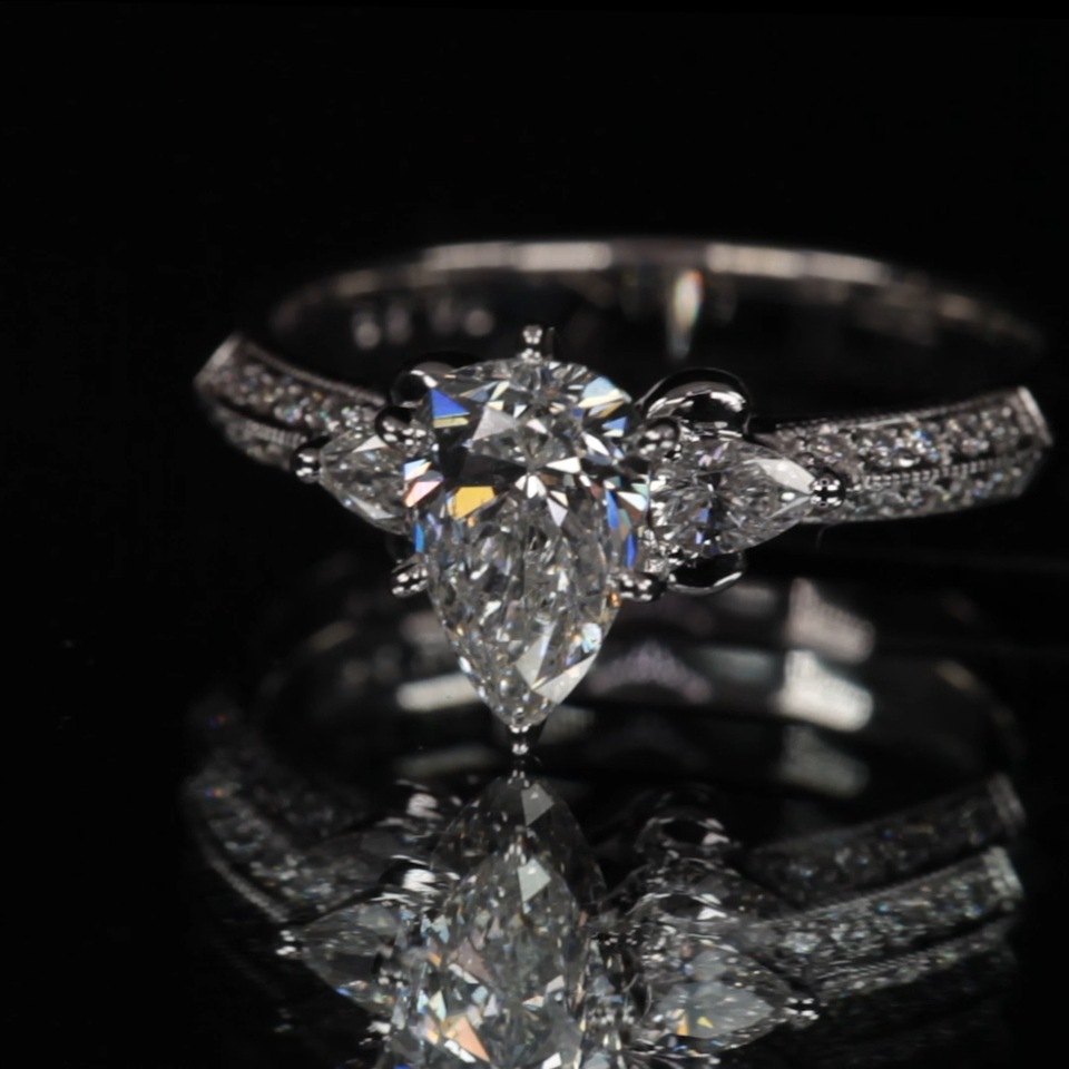 Two prong set pear shaped cut diamonds