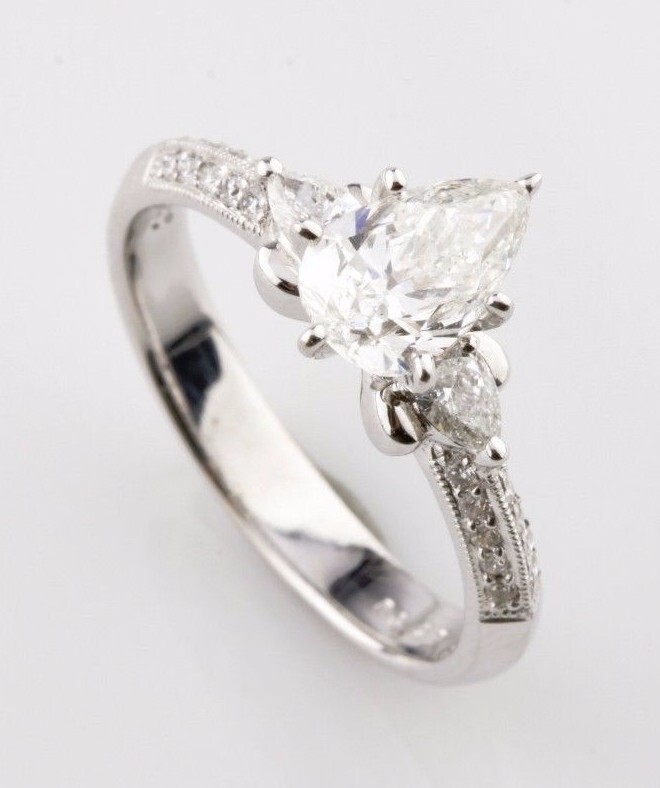 1.36 carat Pear Shape Diamond 18k White Gold Engagement Unity Ring Size 6.75