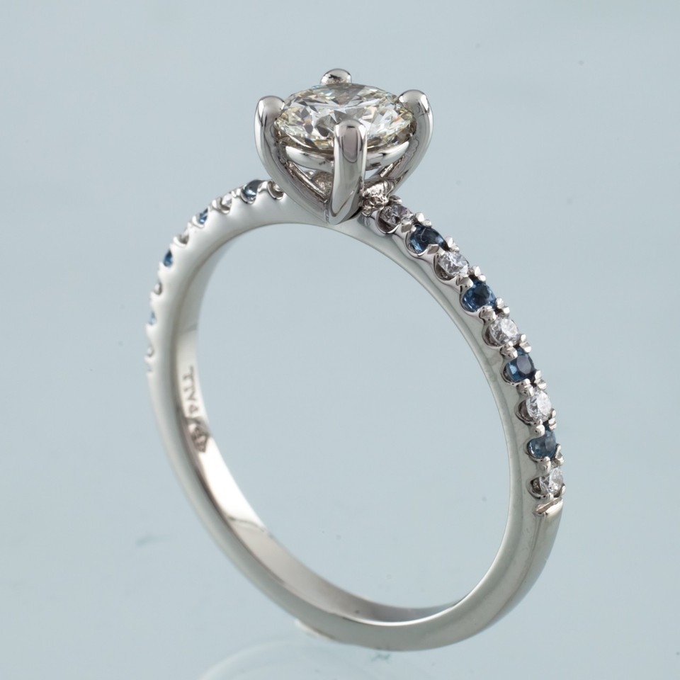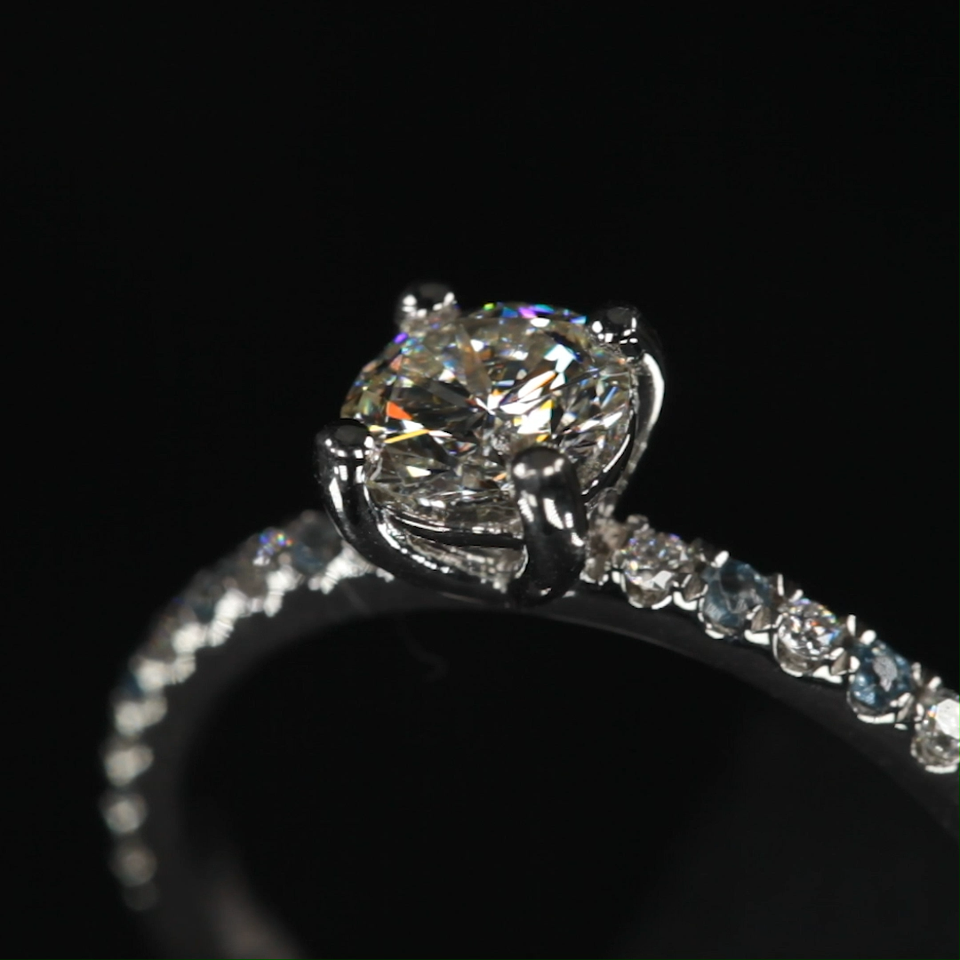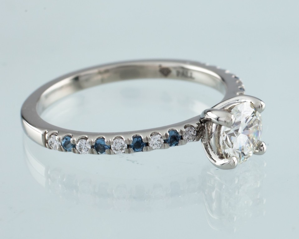 Features 0.73 ct Round Brilliant Center Stone