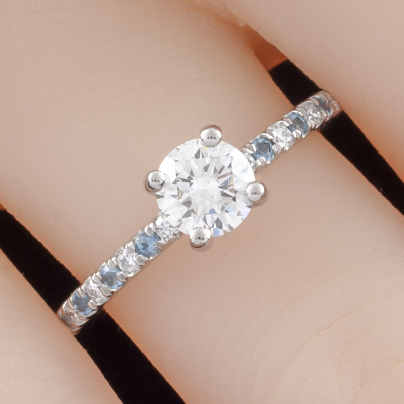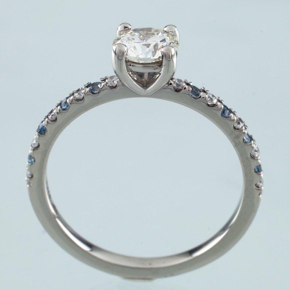 Gorgeous Palladium Ring w/ Diamond Solitaire Center Stone Semi-Eternity Round Accents (Diamond Aquamarine)