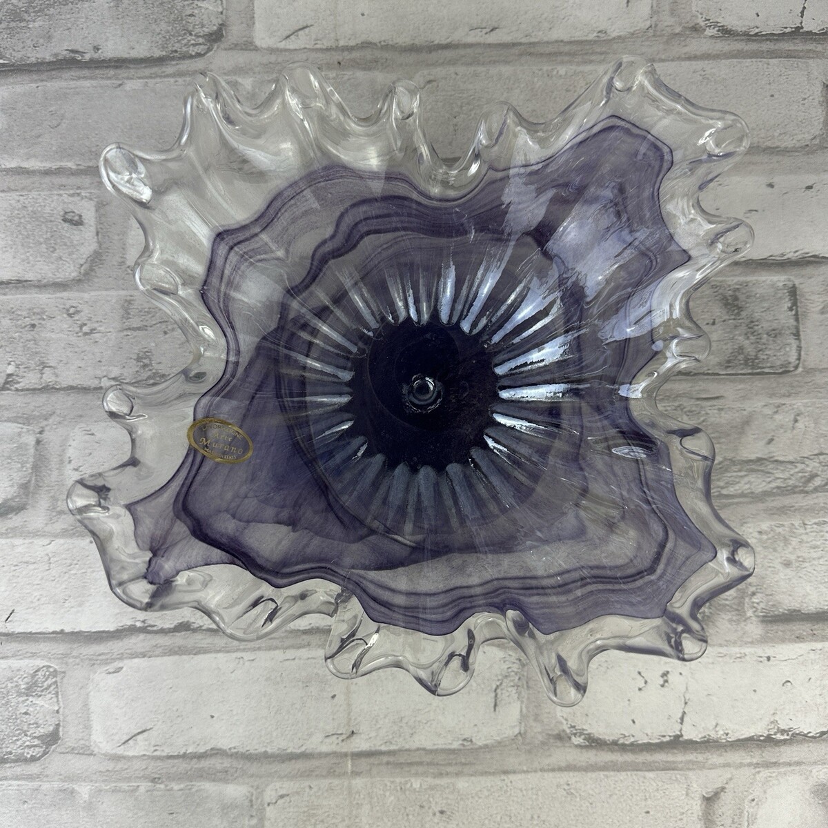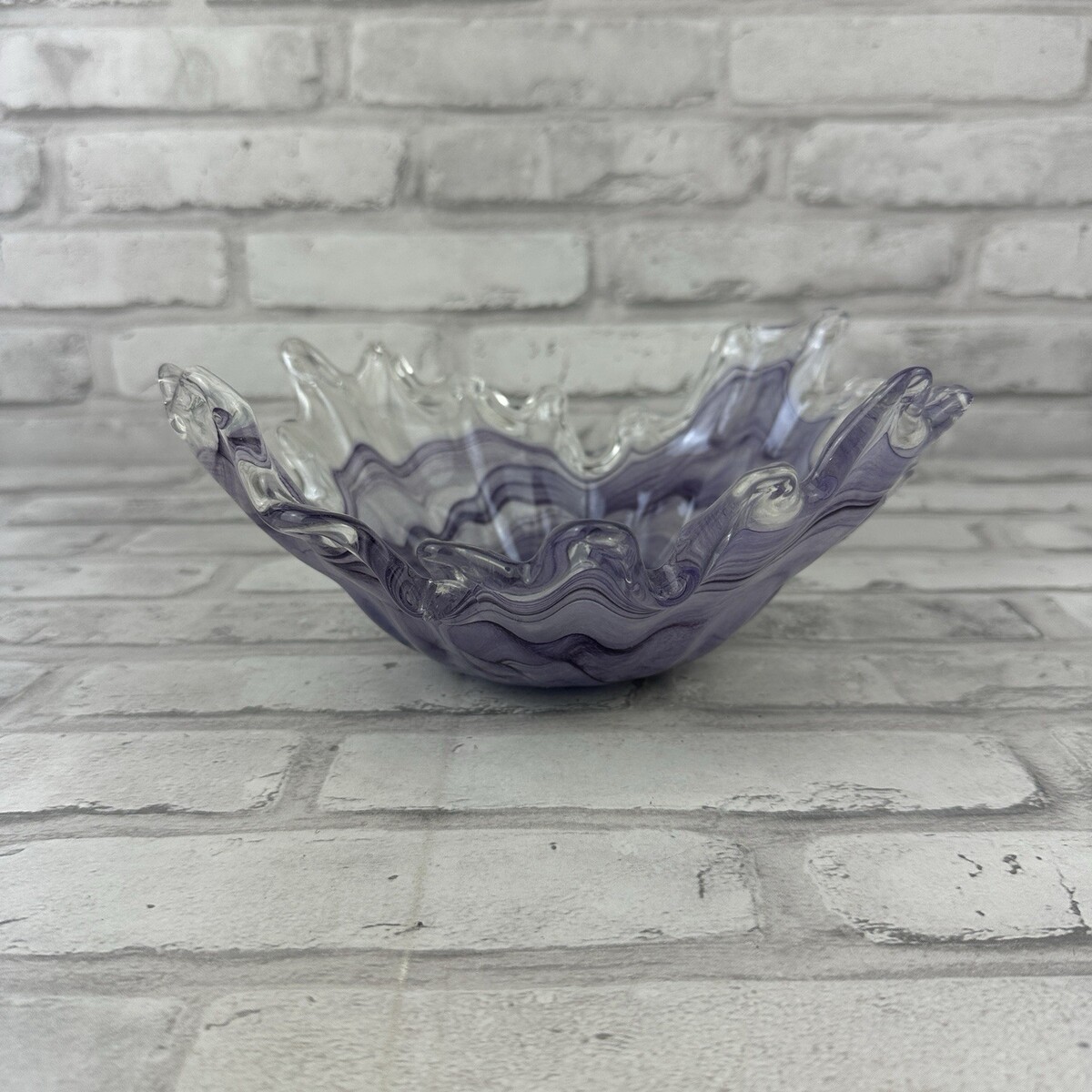Lavorazione Arte Murano Purple White Italian Glass Handkerchief Bowl 9"