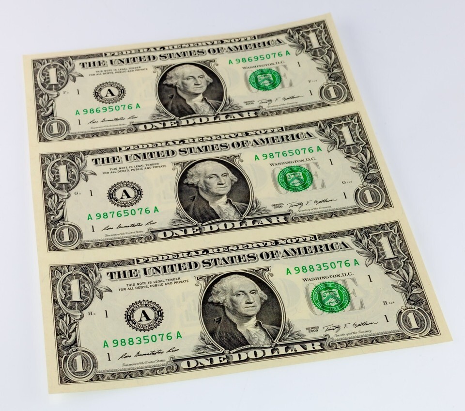Series of 2009 $1 Federal Reserve Note Sheet (3Pcs) FR# 1934-A