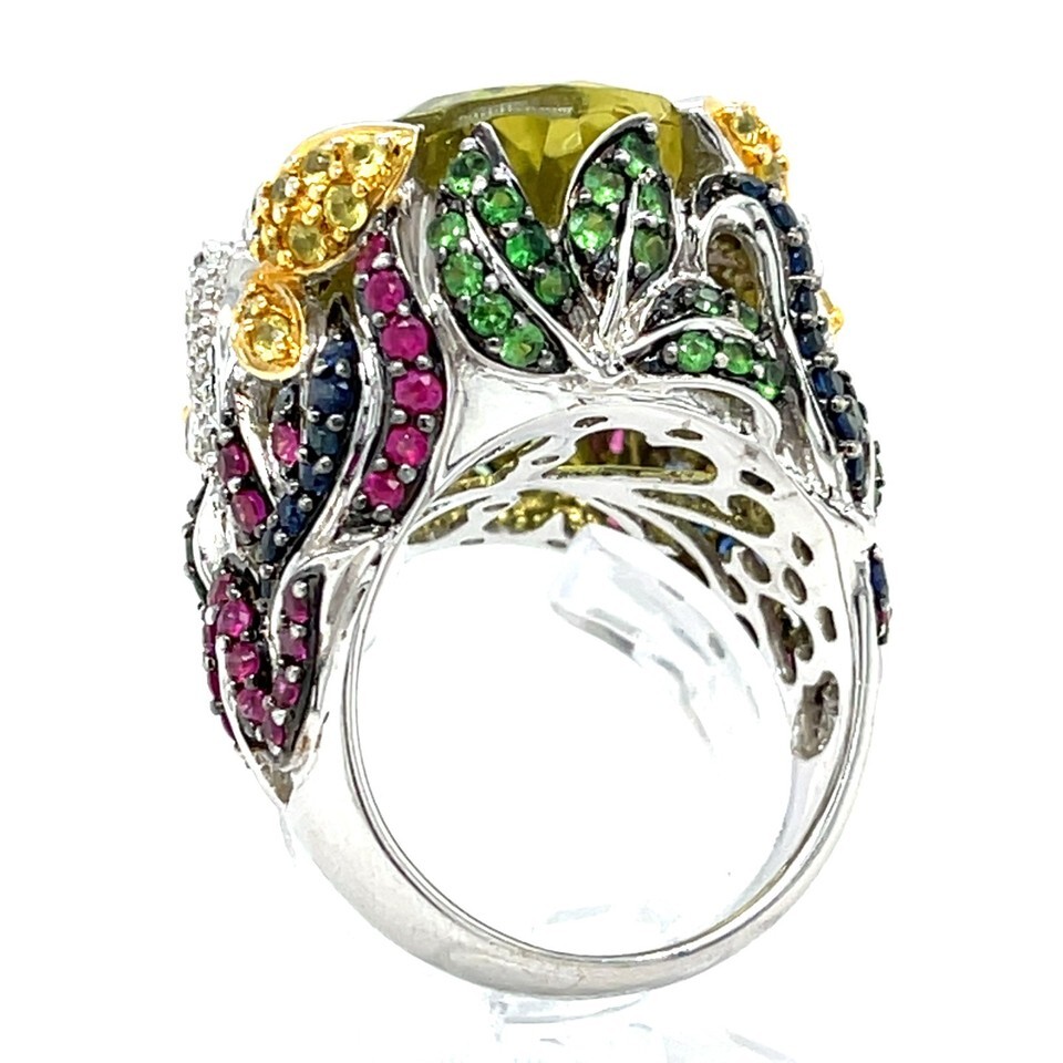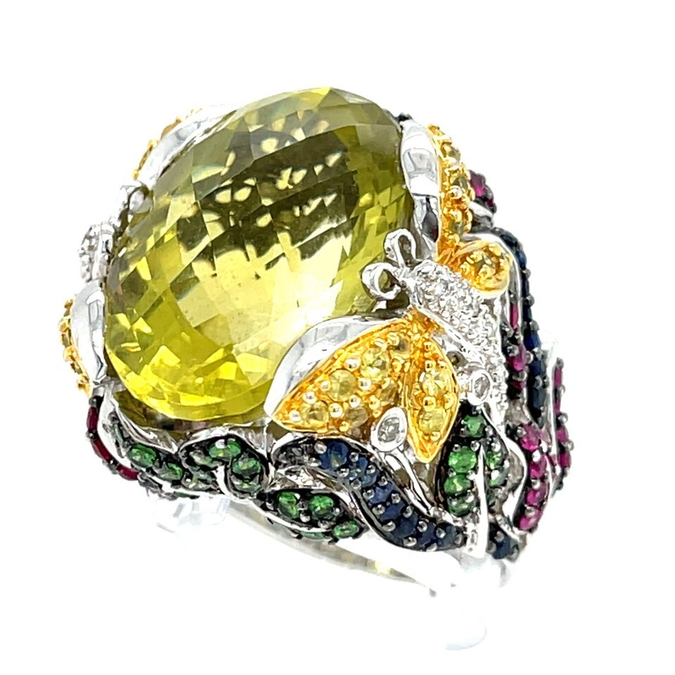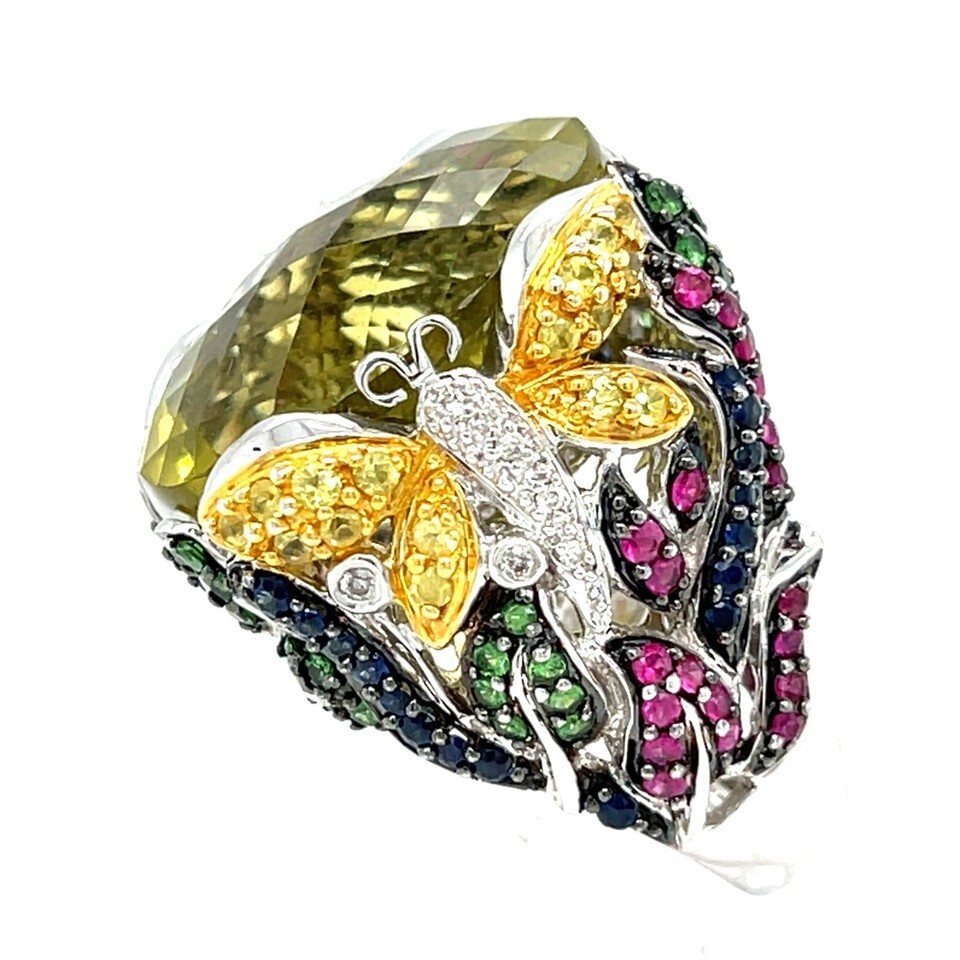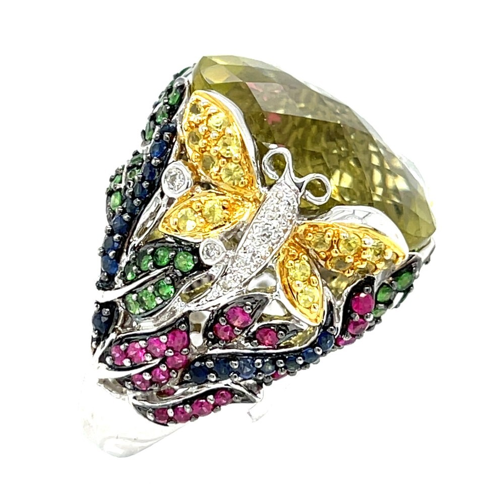 18k White Gold Oval Citrine Cocktail Butterfly Ring with Gemstones Size 7.75