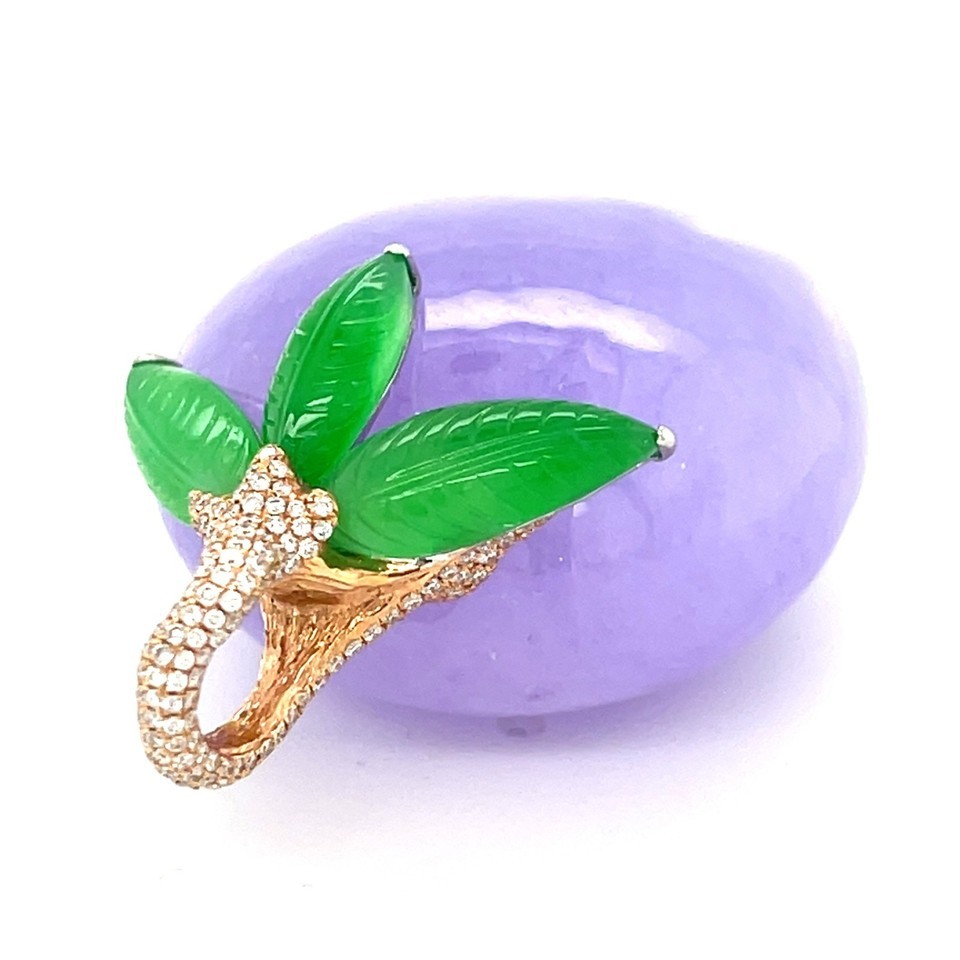 Stunning 161.67 ct Natural Fei Cui Lavender Jadeite Peach Pendant 18k Rose Gold