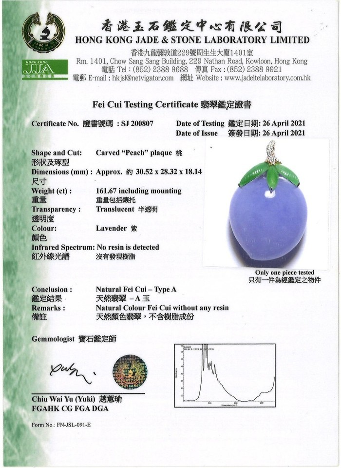 Authenticity Guarantee Stunning 161.67 ct Natural Fei Cui Lavender Jadeite P...