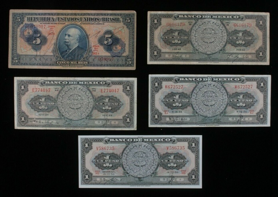 1942-1959 Brazil & Mexico 5-Notes Currency and 50 similar items