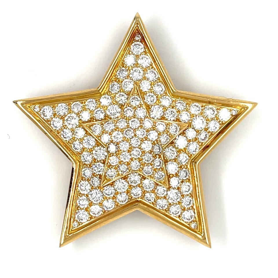 Van Cleef Arpels 18k Yellow Gold 3.86 ct Diamond Pendant-Brooch Star-Shape