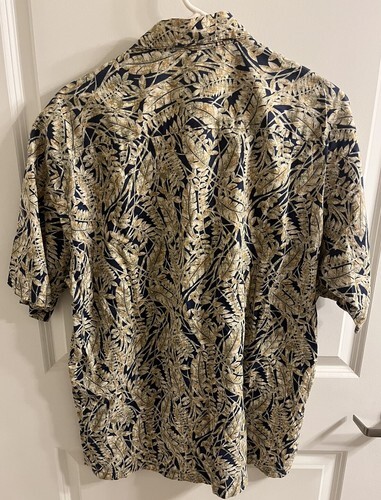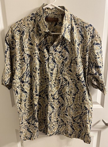 This listing is for a Tori Richard Short Sleeve Shirt Mens Large Blue Green Tan Leaves Hawaiian Honolulu.