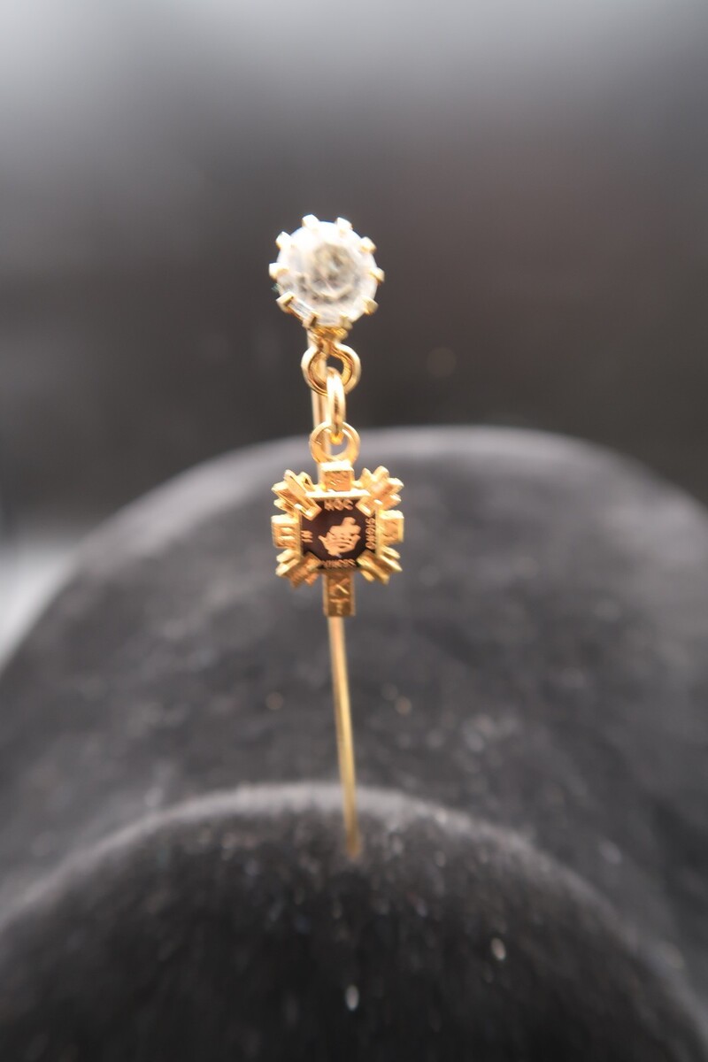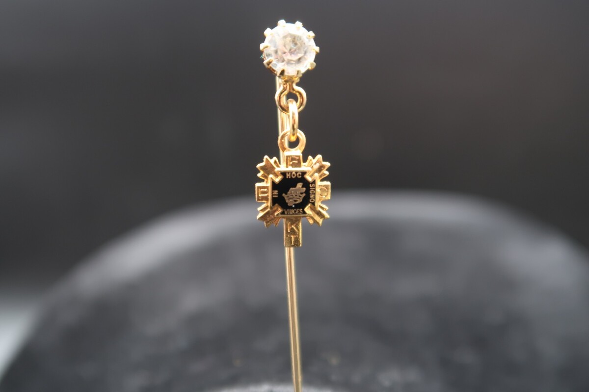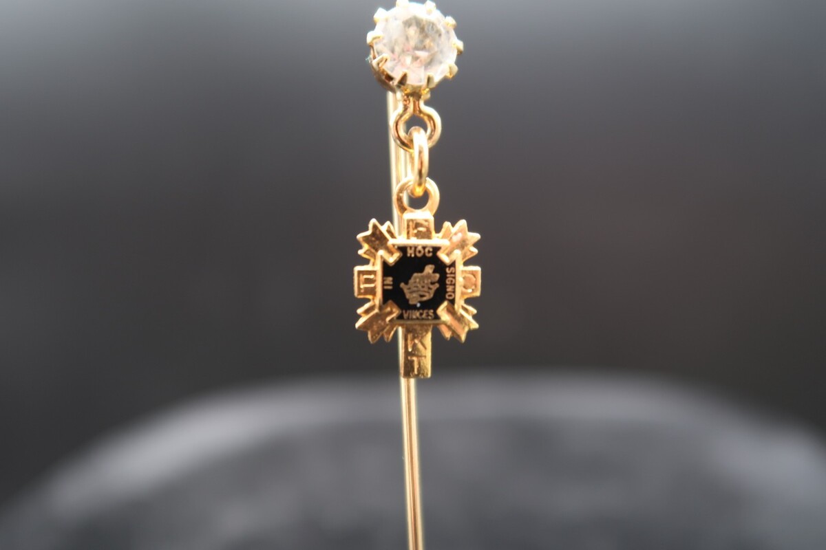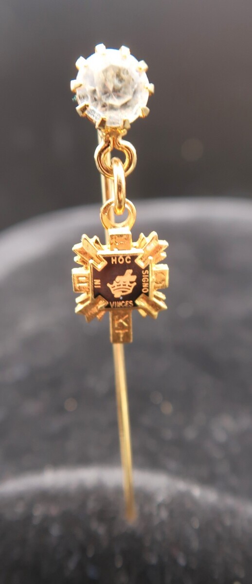 Antique Gold Tone Enamel Stick Pin HOC SIGNO VINCES Knights Templar Rhinestone