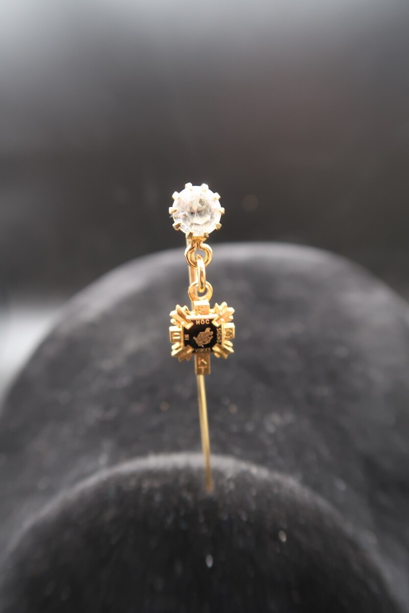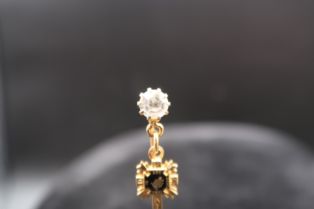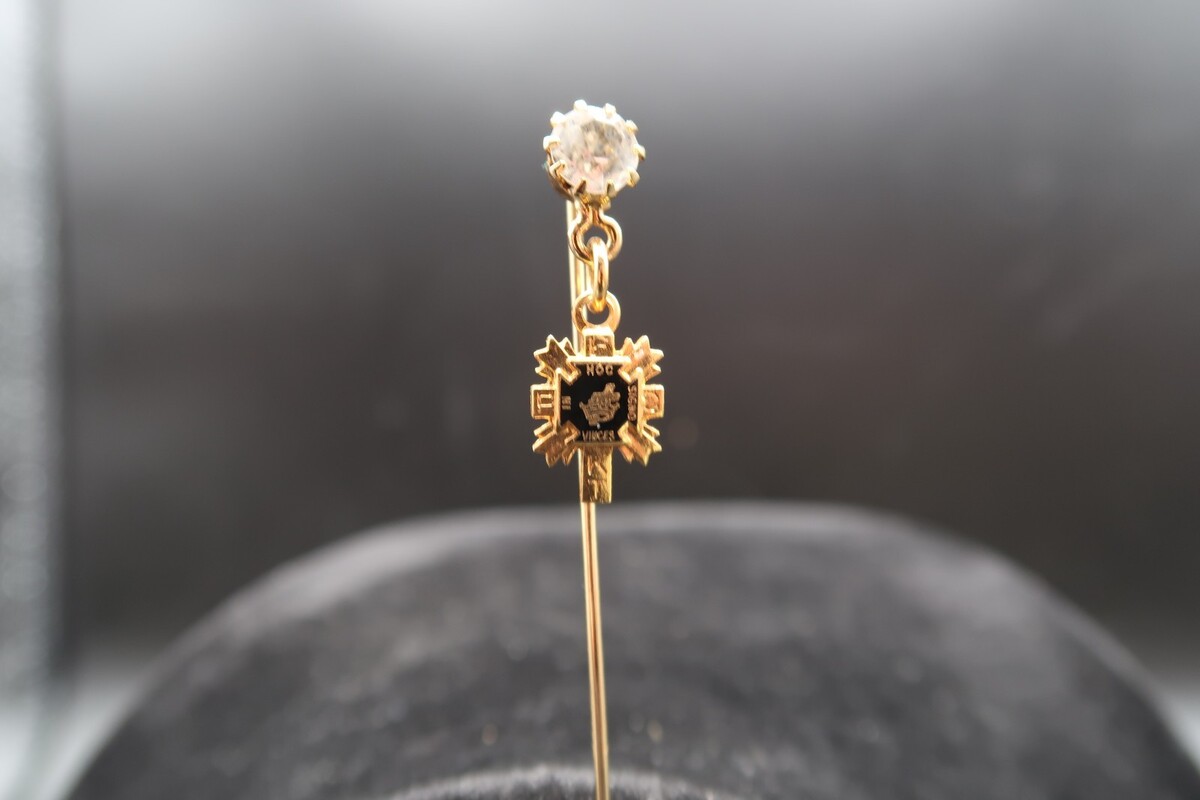 Antique Gold Tone Enamel Stick Pin HOC SIGNO VINCES Knights Templar Rhinestone