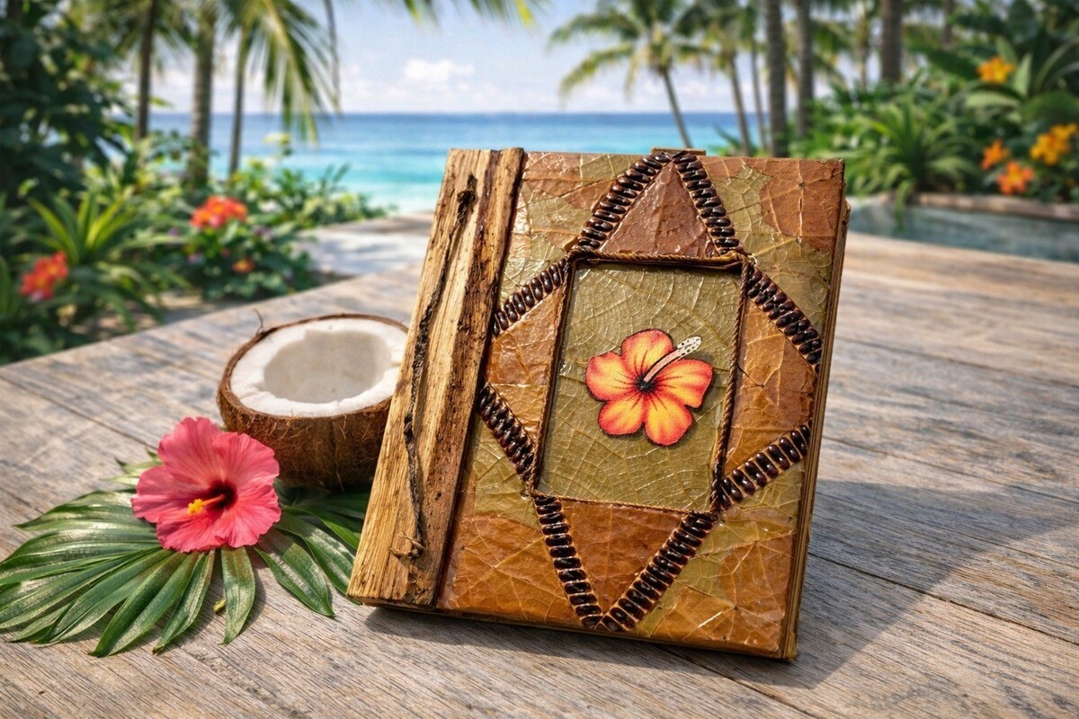 Handmade Tropical Leaf Journal Album Bamboo Spine Hibiscus Cover 9x7