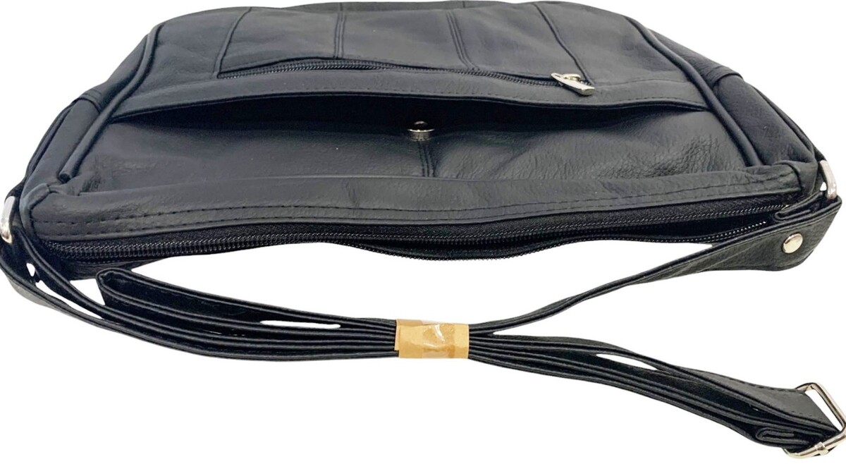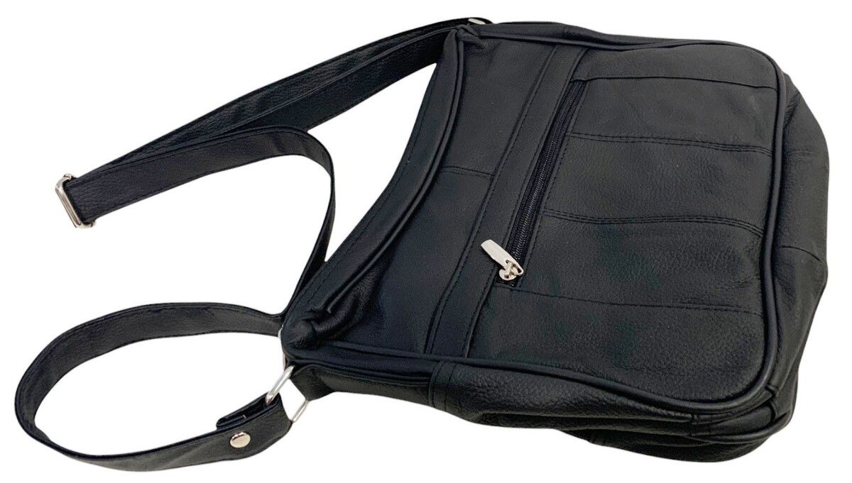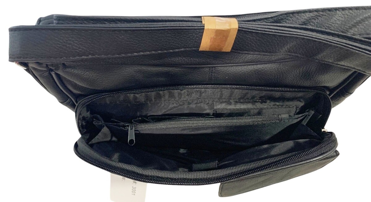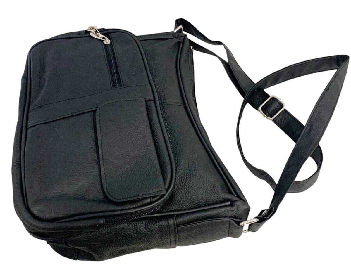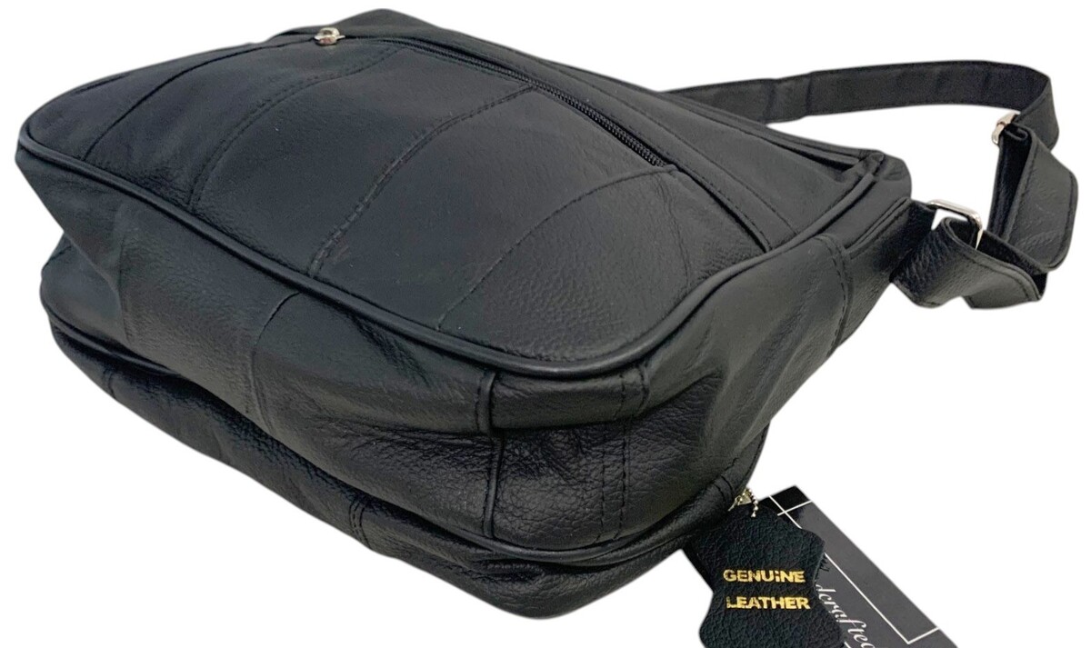 BLACK COWHIDE Leather Organizer Shoulder Bag Multiple Pockets Cross Body Handbag