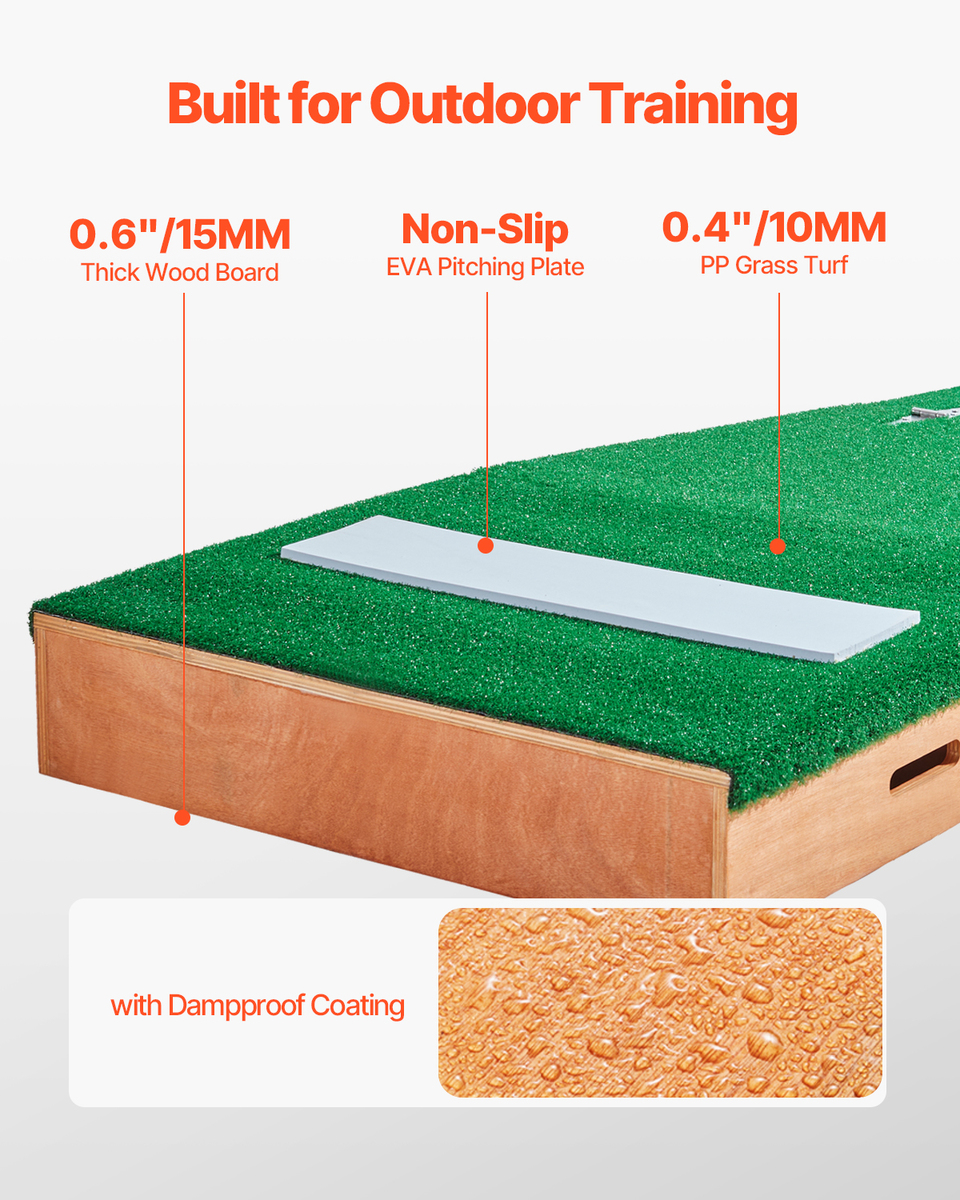 Professional-Grade Design: This pitching mound features 10mm PP grass turf, ensuring a realistic feel with great traction for optimal performance. The 15mm thick wood board is coated with a damp-proof layer and prolongs the mound's durability