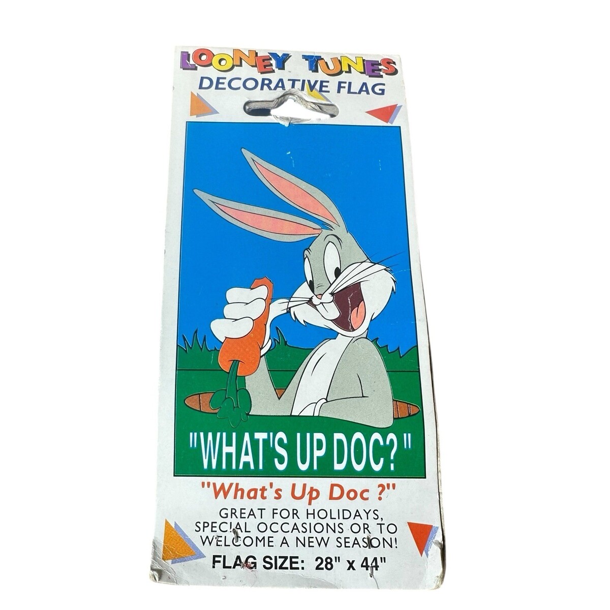 Vintage 1996 Looney Tunes Bugs Bunny "What's Up Doc" 28" x 44" Decorative Outdoor Yard Flag #49504
