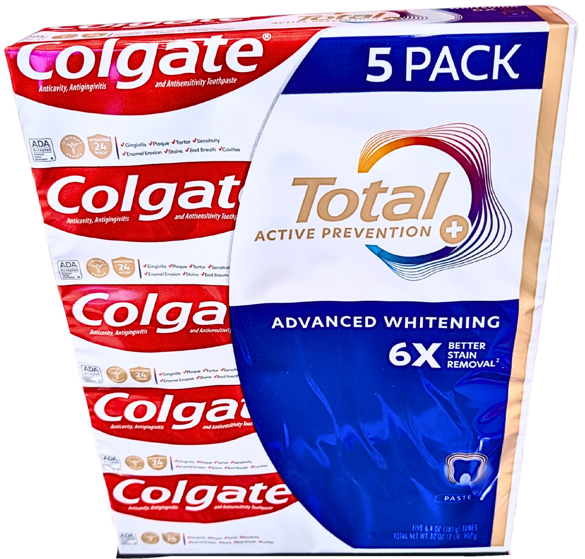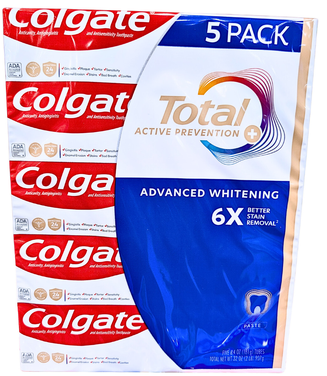 Colgate Total Active Prevention Plus Advanced Whitening Toothpaste 5 x 6.4 Oz