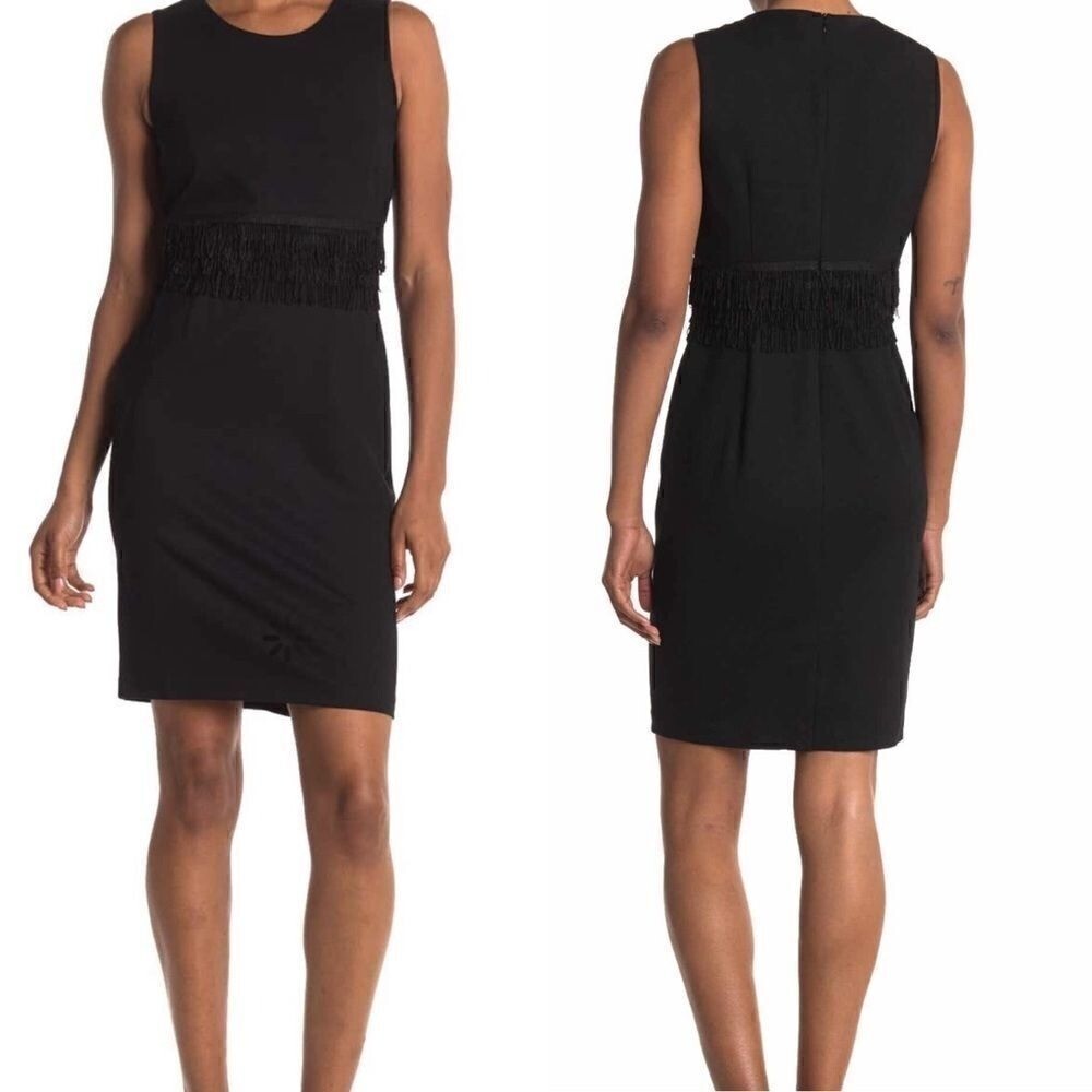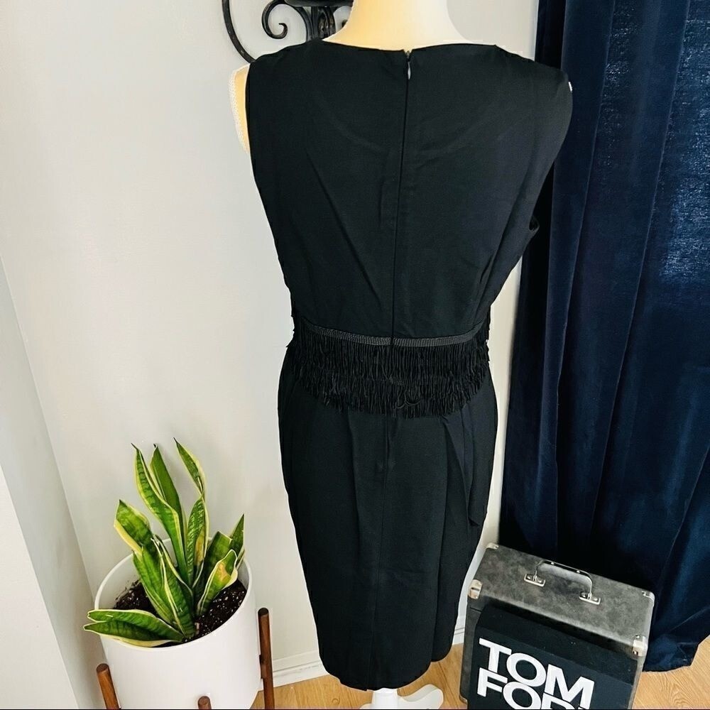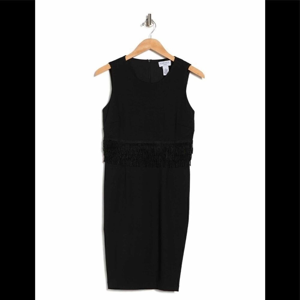 Carmen Marc Valvo Ponte Scoop Neck Dress, Black Size: 10, Fringe Dress NWT