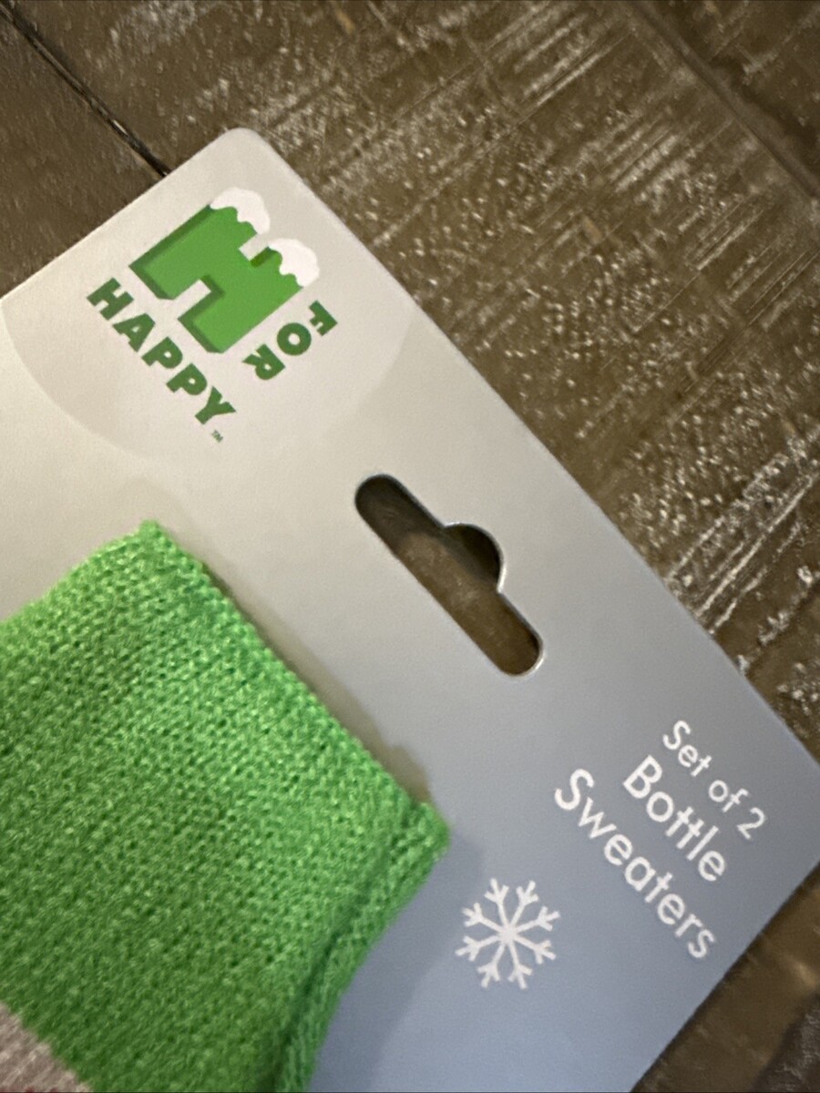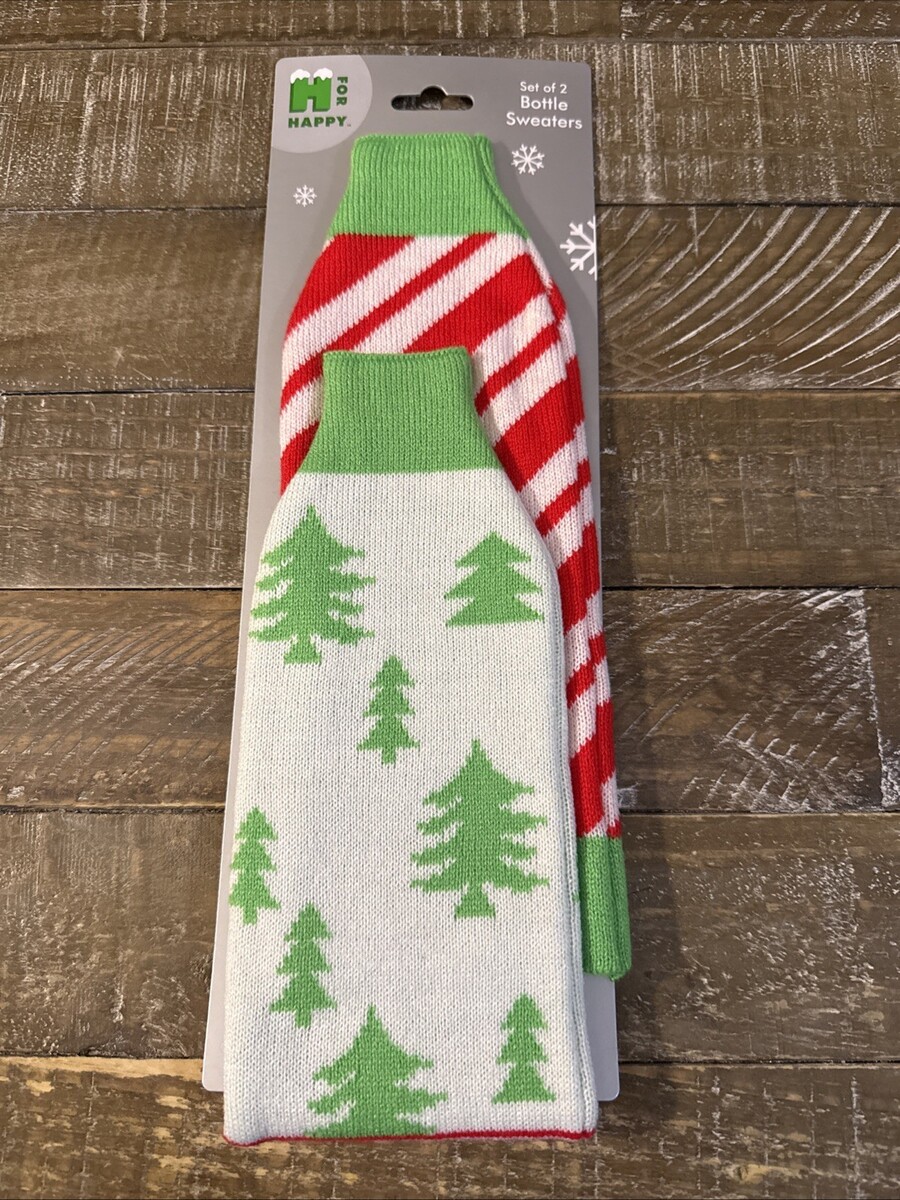 The H For Happy Christmas Bottle Sweaters Set Of 2 by Wondershop includes fabric sweaters designed specifically for holiday decorations. Perfect for adding a festive touch to your Christmas celebrations, these bottle sweaters are made to fit two bottles and feature a heartwarming design that adds charm to your holiday table setting.