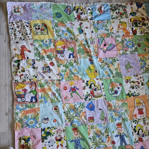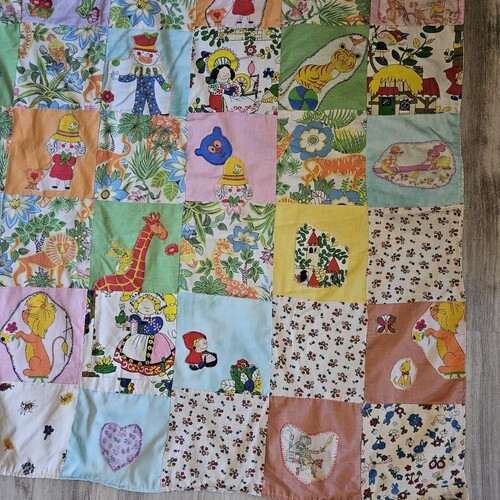 Vtg Handmade Blanket Boho Quilt Colorful Coverlet 62x83 70s 80s Fairy Tales