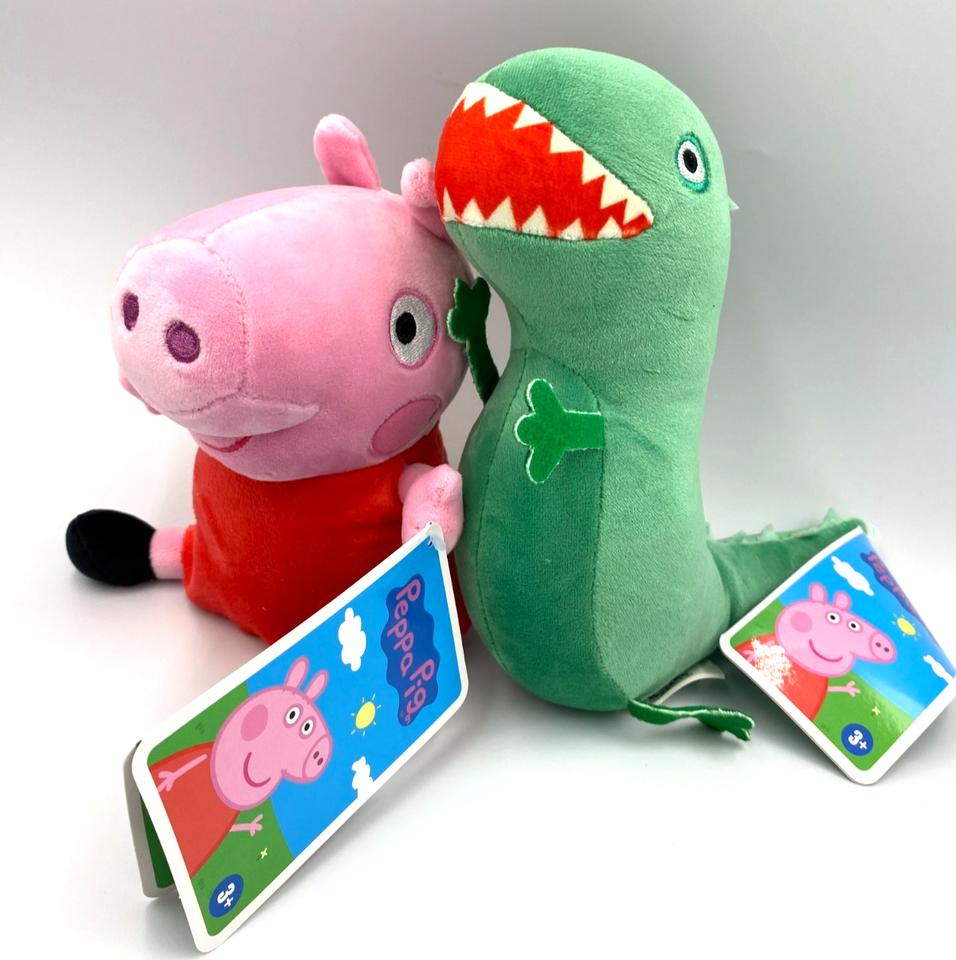 Set of 2 Peppa Pig Plush Toys 8 inch Dinosaur and Peppa Pig New with Tag