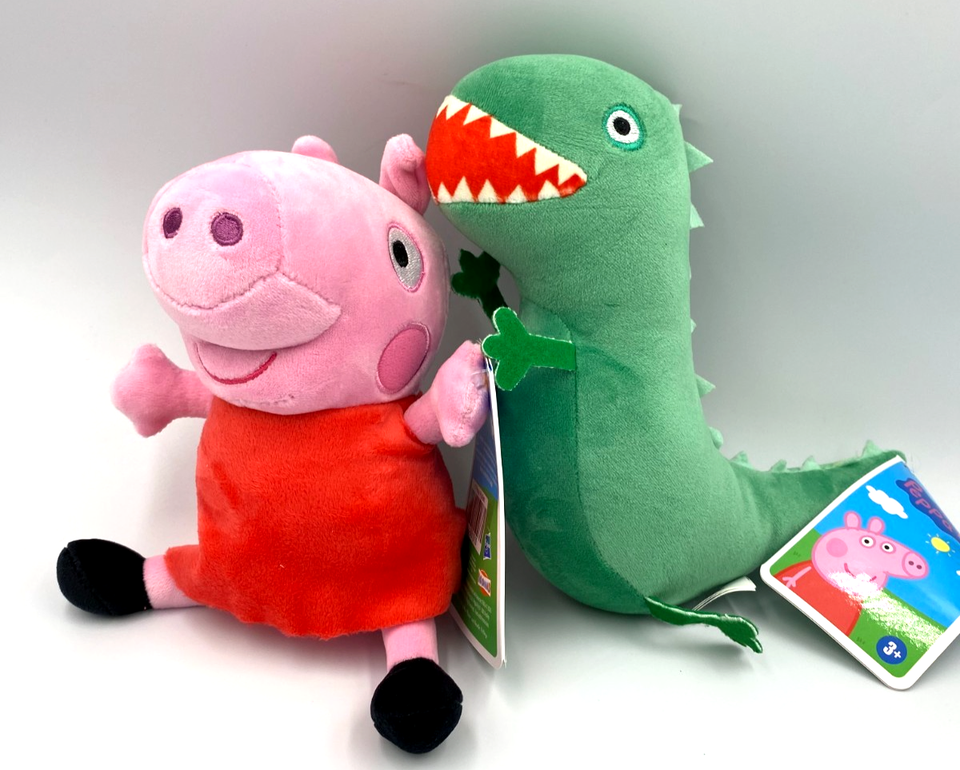 Set of 2 Peppa Pig Plush Toys 8 inch Dinosaur and Peppa Pig NWT