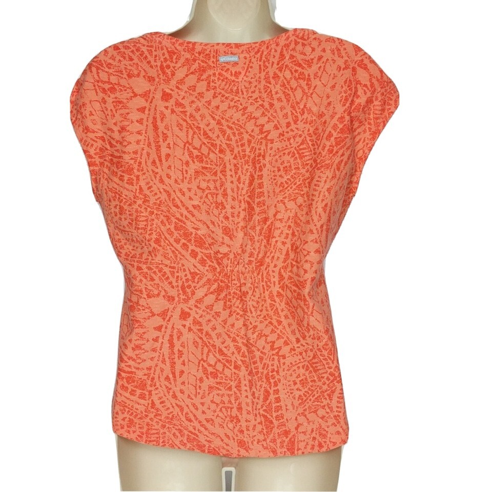 Columbia Athletic Shirt Size Small Orange Geometric Scoop Neck Ruched Shoulder