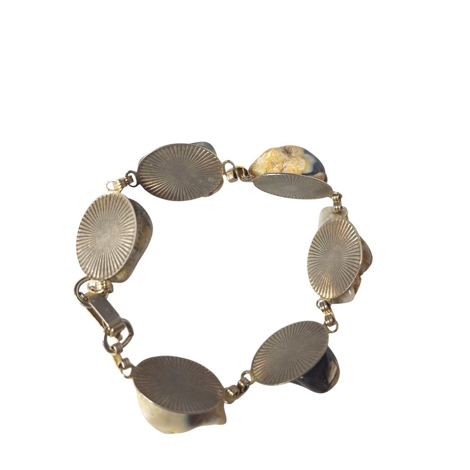 Vintage Estate Gold Tone Agate Natural Stone Bracelet Chunky Boho Bohemian State