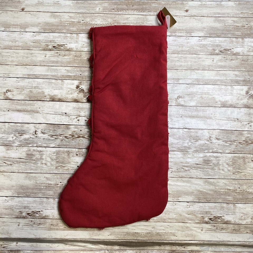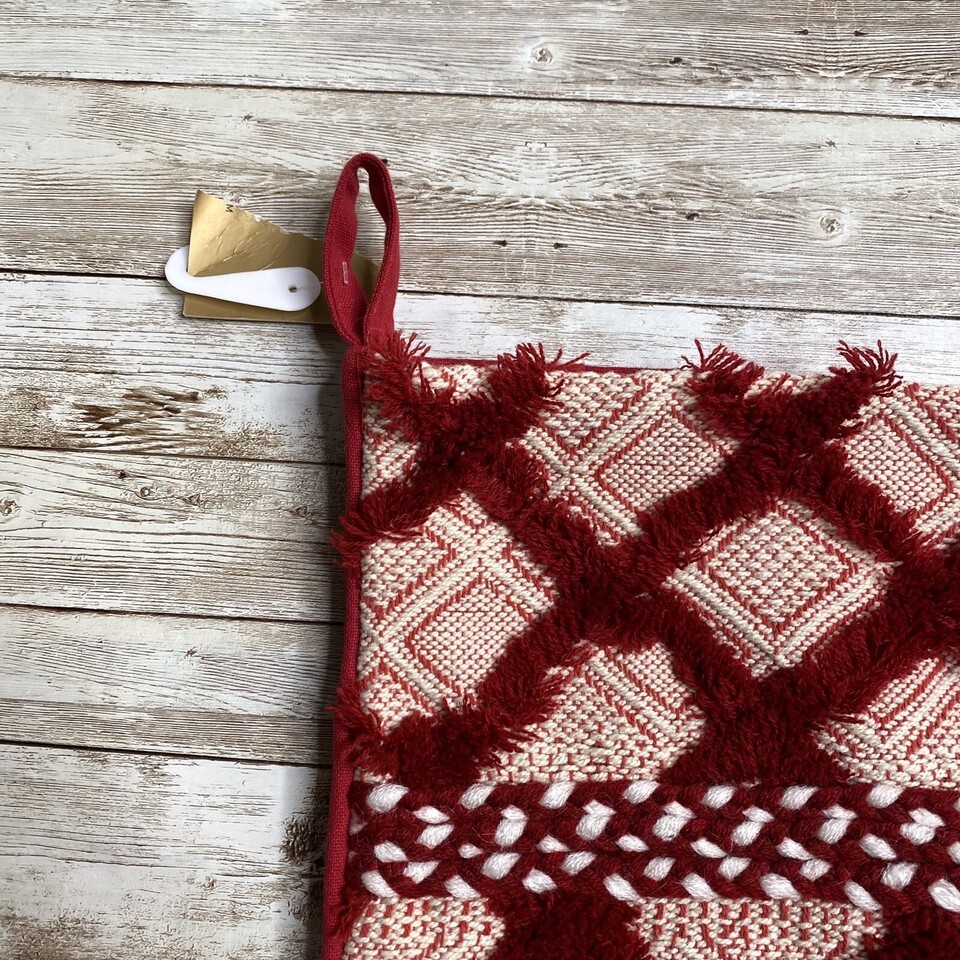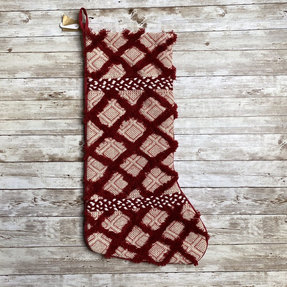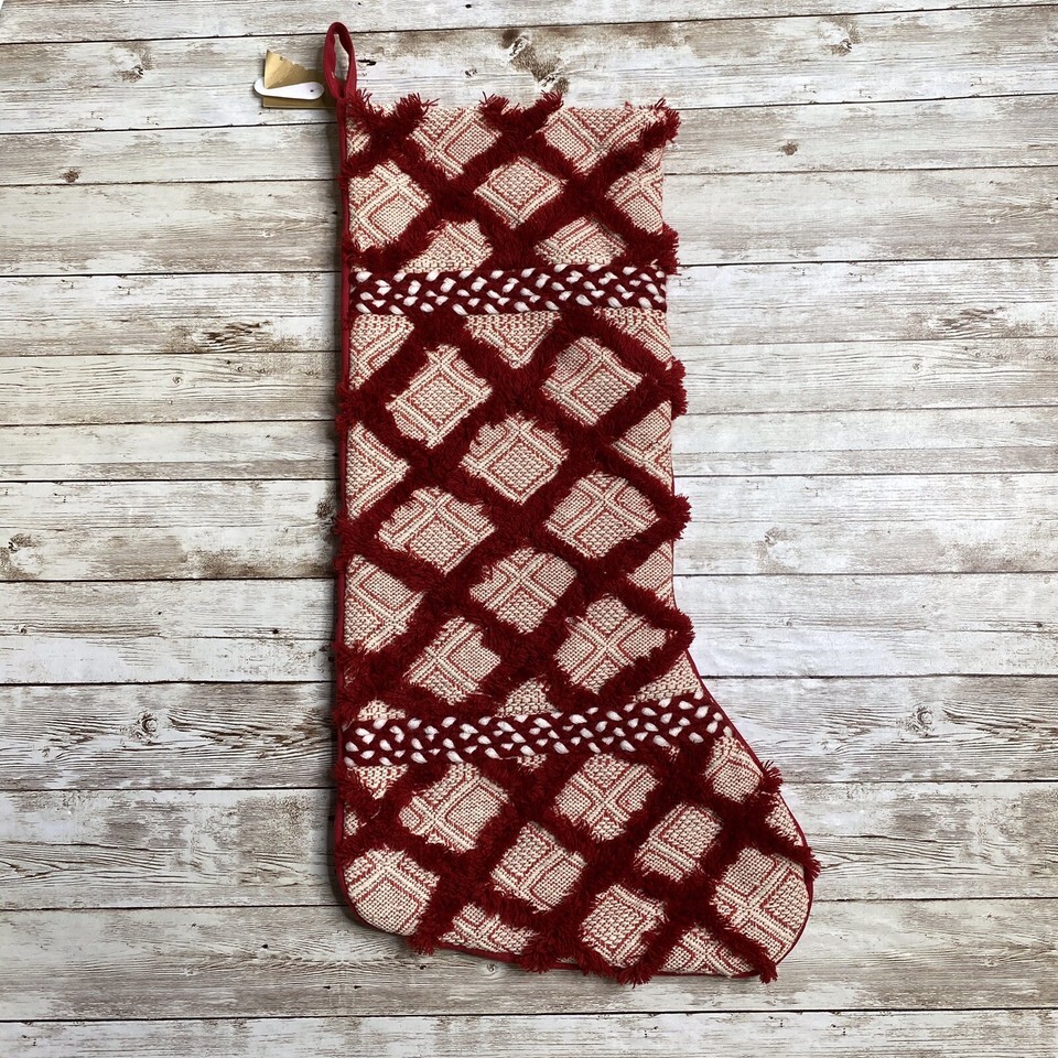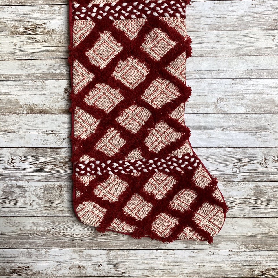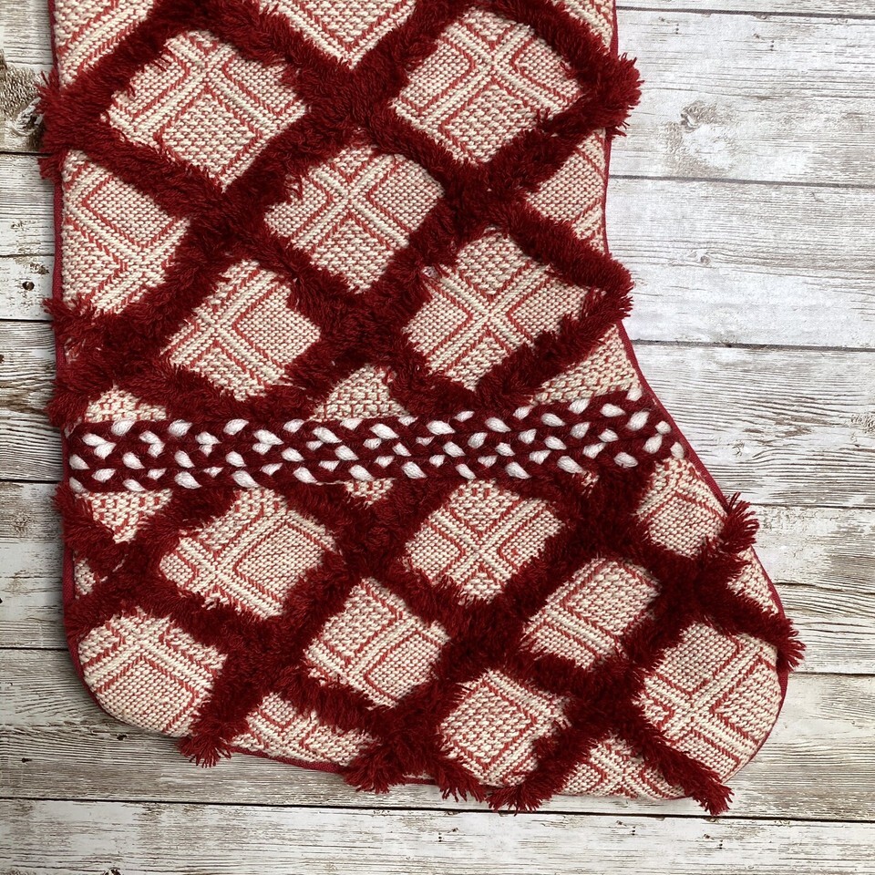 Balsam & Fir Red Patchwork Country Chic Fringe Christmas Stocking 22”